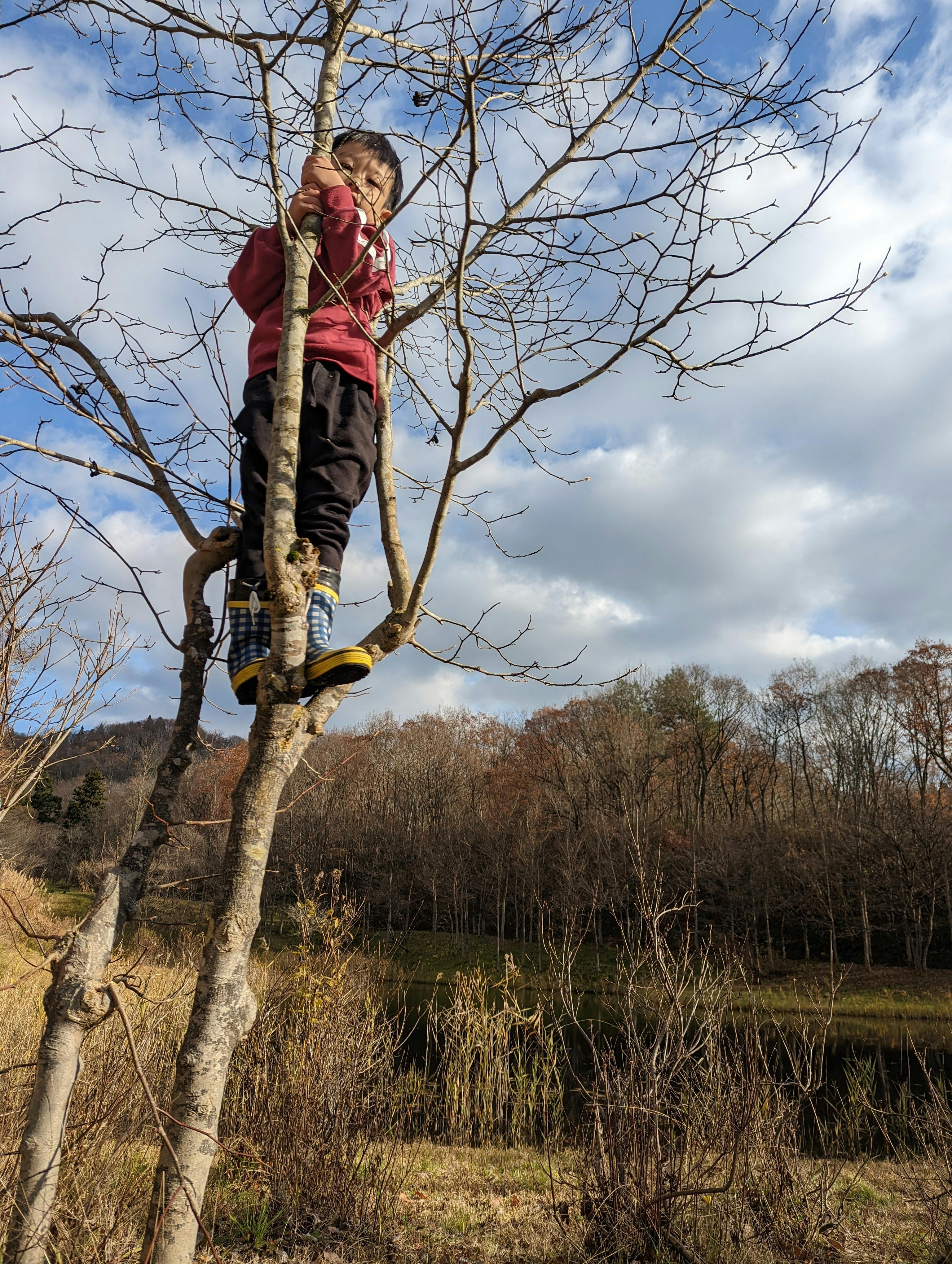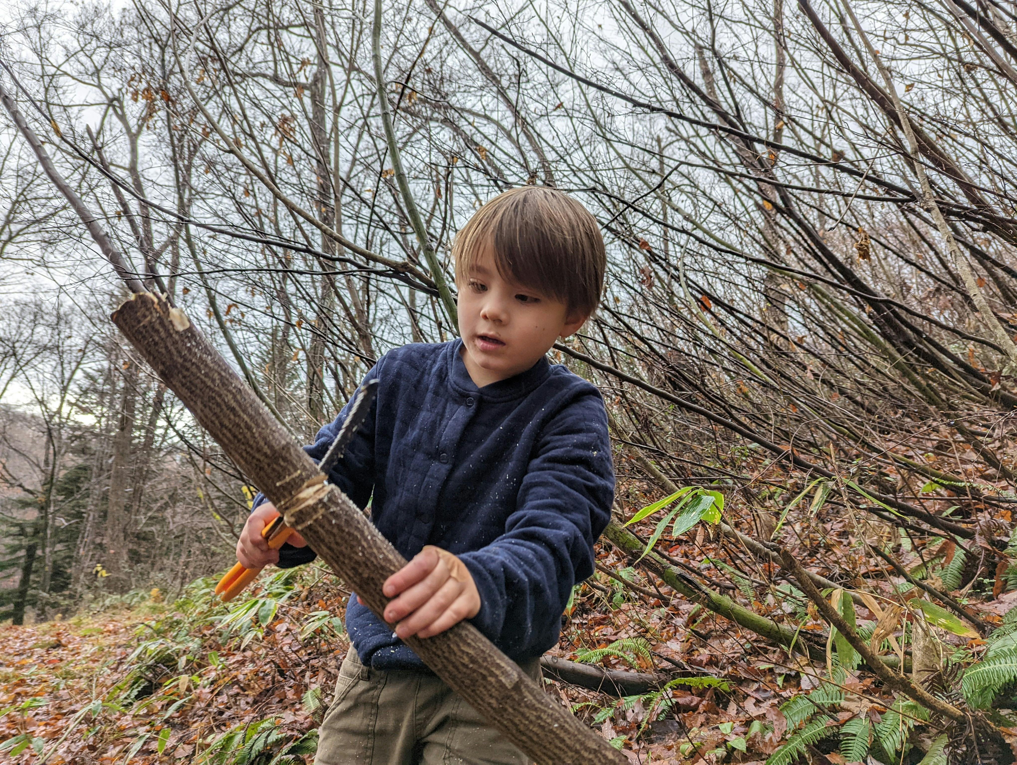 4年前、私は妻と一緒に群馬県の山間部で森のようちえんの立ち上げを手伝い、それが子どもたちにどれほど良い影響を与えるかを目の当たりにしました。自然のなかで長い時間を過ごし、不思議なことに没頭し、内なる好奇心を引き出す体験は、現代のハイペースで結果を重視する環境とは対照的な素晴らしいものでした。群馬に引っ越して間もなく、私たちは山形に移り住み、地域に質の高い幼児教育の機会を提供したいと思うようになりました。そこで昨年の7月、私は山形を拠点に”屋外での自由遊びの機会を新たに設ける”ことについて、関心を持つ地域の人々や保護者の方々と話す機会を設け、プレイグループを作りました。この1年間、私たちはあらゆる天候の中で遊び、木に登り、果物を集めて食べ、山菜を採ってきました。山、森、海、そして川や農場を探検してきたのです。