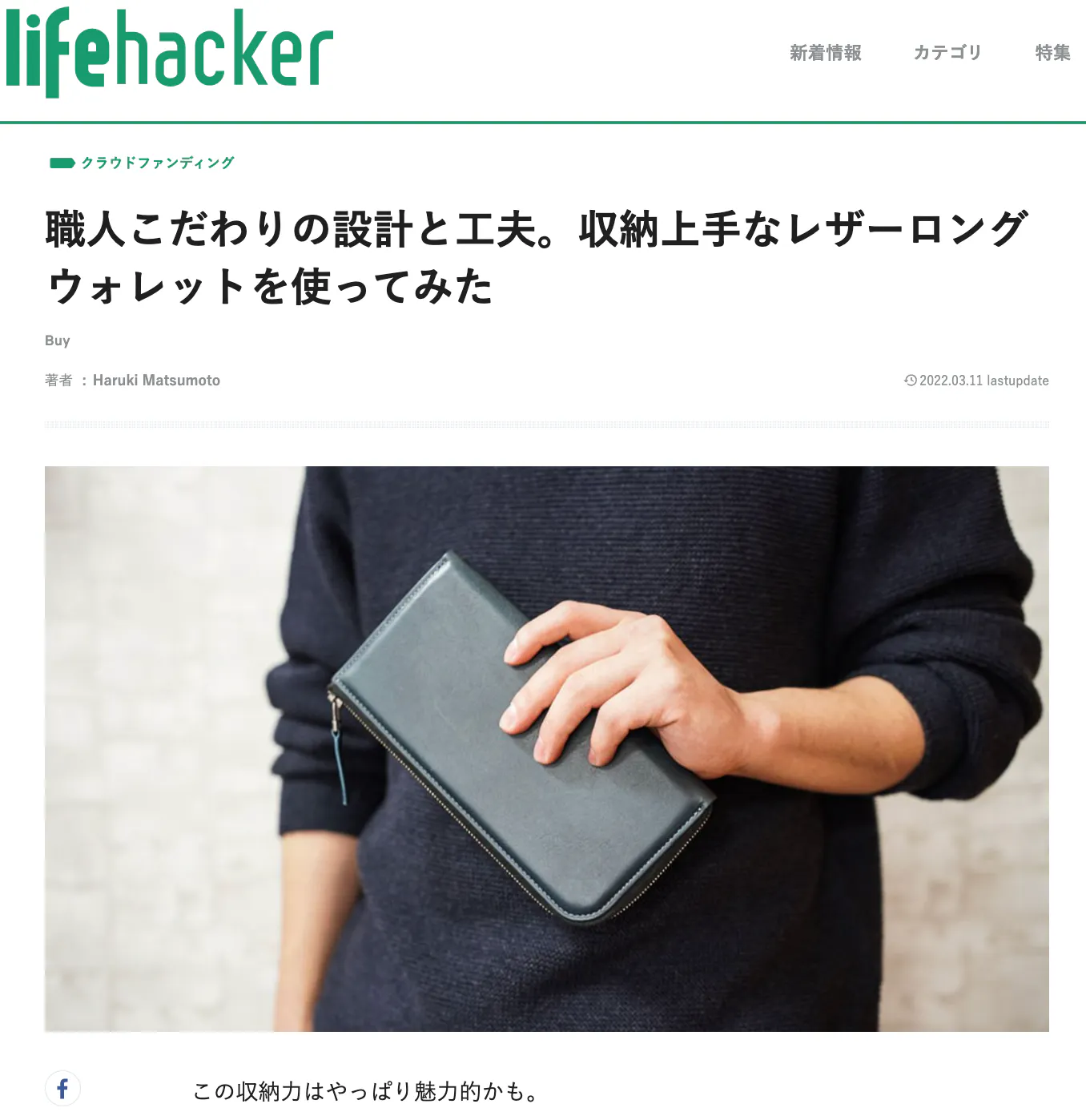 ビジネスや暮らしの情報を発信するlifehacher (ライフハッカー) さんに、本企画アイテムの長財布を記事に取り上げていただきました!