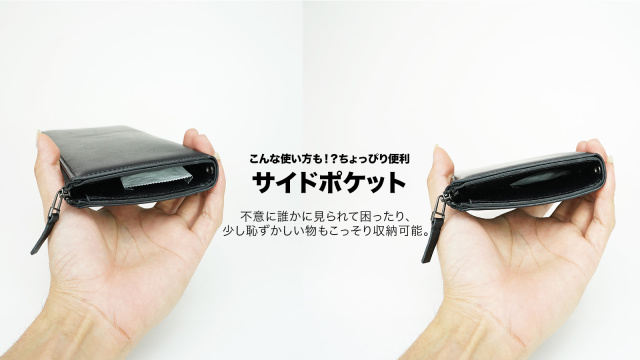 ✓ 仕切りの可動域が広いので、お札の種類や領収書等を区別して、お好みに合わせて左右のスペースを使い分けることが可能です。