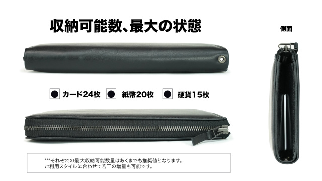 ■ 硬貨15枚、カード24枚、紙幣20枚の収納力