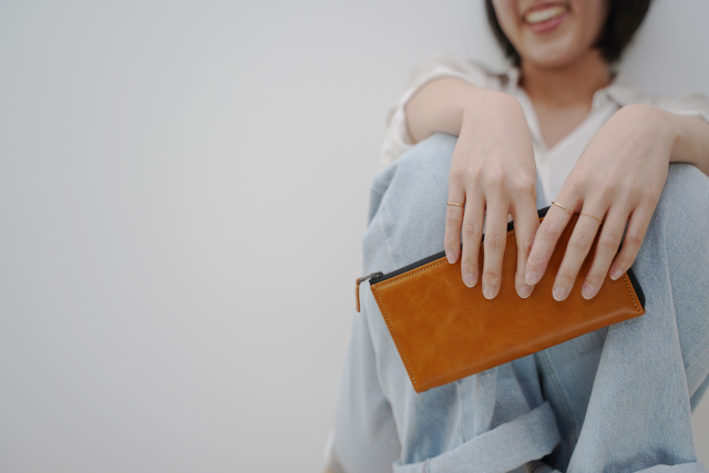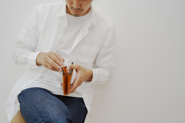 ポケットやバッグへ革の色がついてしまった…買ったばかりなのにすぐ傷や線がついてしまった…そんな方々のご相談の声を参考に、色が落ちにくく比較的傷がつきにくいウレタンコーティング加工を施してある本革を採用しました。