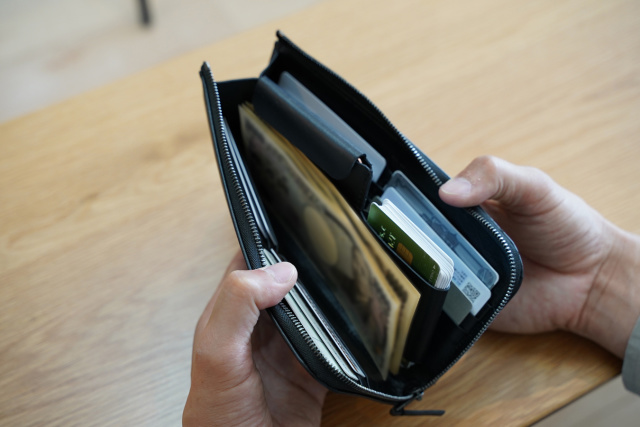 時代に合わせ、硬貨は控えめにカードと紙幣の収納に力を入れました。