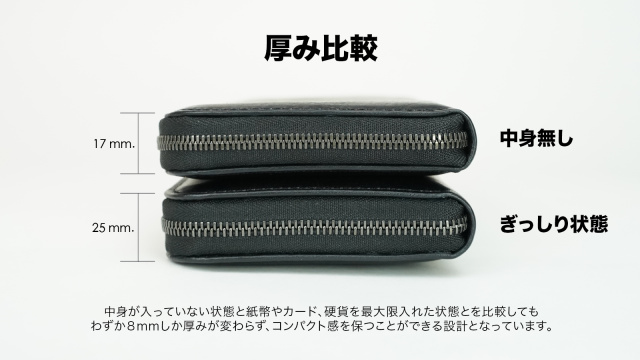 ✓ ぎっしり入った状態でも厚みは約8mmしか変わりません!