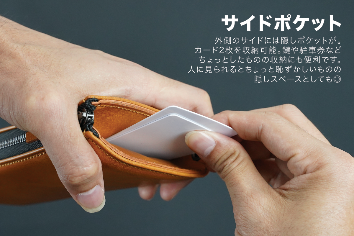 また、長財布では定番と言っても過言ではない、中央に仕切りのように配置されるファスナー付きの硬貨スペースは敢えて取り付けず、オリジナルの形とした結果、よりスマートなデザイン性とコンパクトなサイズ感を引き出すことができました!