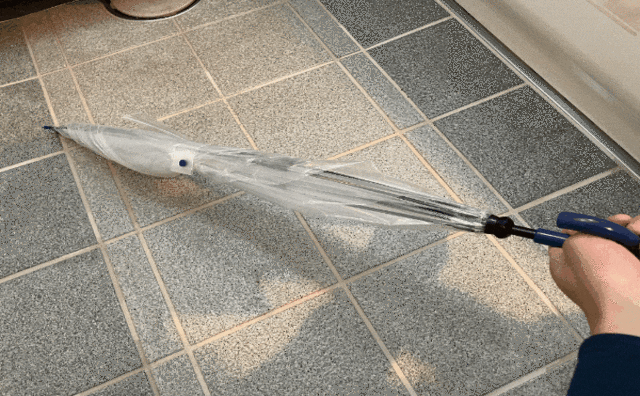 3.傘を開く要領で開いて下さい。※室内なのでゆっくり開いて下さい、力を入れなくても開けます。