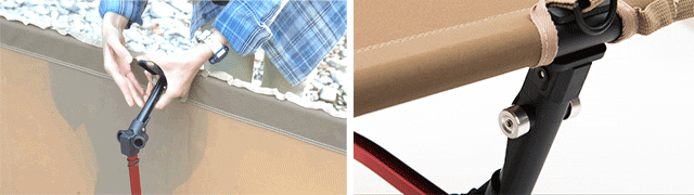 テントコットは、6か所のペグダウンが可能です。