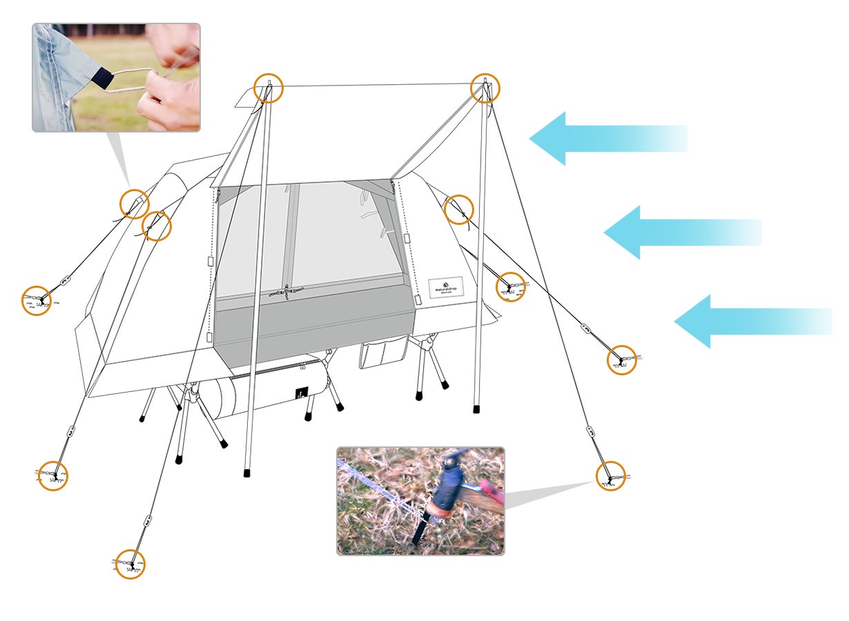 ※耐風性にも強い設計と構造(ペグ&ロープ)
