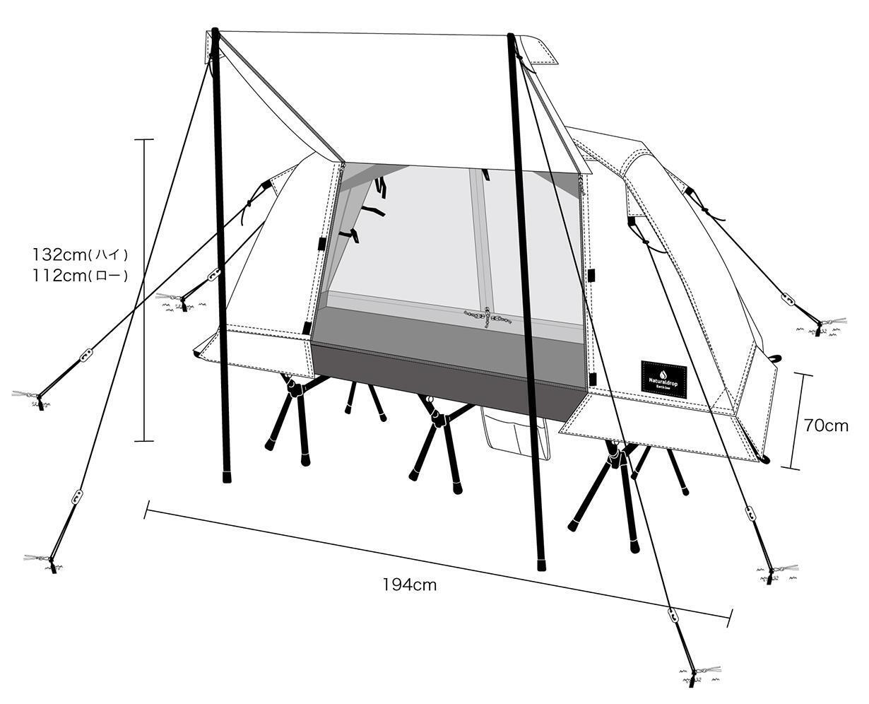 ※2021年3月、キャンプコット「 Naturaldrop 」のご支援をされた方は、本テント商品の取り付けが可能でございます。