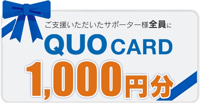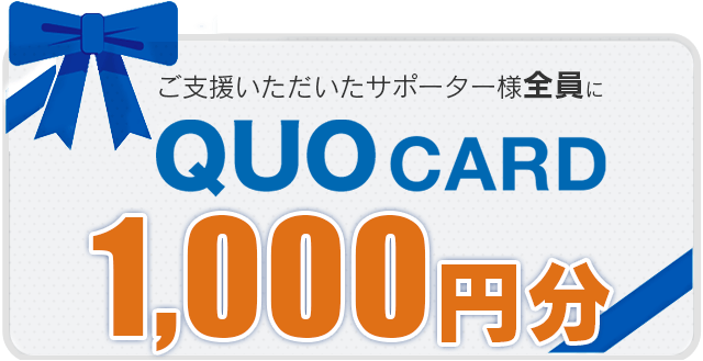 ご支援いただいたサポーター様、全員の方へ「クオカード1,000円券」をリターンします。