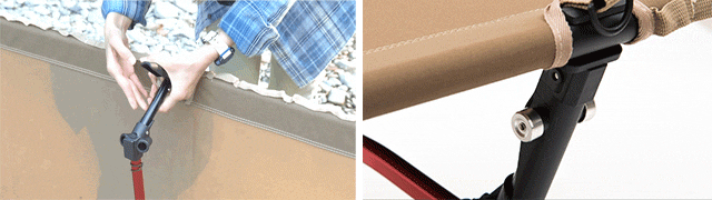 また、「テント単体」「テントコット」の両方ともペグダウン機能が可能です。