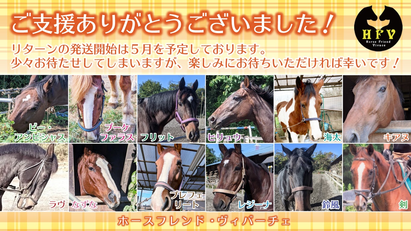 2022/07/11 20:16ご支援ありがとうございました。5月返礼品発送予定でしたが、6月までずれ込んでしまいました。宛名の印字ミス等があり暫くしてから戻って来てしまった事もあり少し待ってから発送完了のご報告を致しました。もしまだ届いていないと言う方がいらしたらご連絡下さい。今年は梅雨が少なく暑い夏が早く来てしまい、乗馬には厳しくなってしまいましたが、皆様のお越しを首を長くして、待っています。 もっと見る
