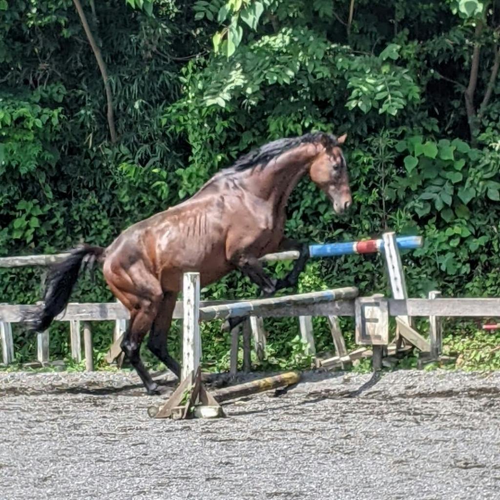 2022/03/29 08:25当乗馬クラブ会員のTが、全5回にわたってヴィバーチェの馬たちをご紹介する活動報告シリーズ。ラストとなる第5回目にご紹介するのは、ヴィバーチェで働き天寿を全うしていった、思い出の中の馬です。———剣(つるぎ)ヴィバーチェの創設メンバーの1頭です。当時間借りしていた乗用馬牧場から譲り受けた馬で、かつて競走馬として笠松で走っていた引退競走馬です。元いた乗馬クラブでは障害飛越競技を担当しており、よくトレーニングされた優秀な乗用馬でした。しかし、気持ちのあり方が変わってきてしまったのか、しだいに「本当にうまいライダーしか乗せない」「ライダーが少しでも未熟な面を見せるということを聞かなくなる」というような気難しさを見せるようになります。手を焼いたその乗馬クラブから話を受けた、当時間借りしていた乗用馬牧場がそれを受け取りました。その馬の話を聞きつけた、当時の現場長ご夫妻を取り巻く人々が力を合わせてその馬を助ける形で、剣はヴィバーチェに移籍することになったのでした。ちなみに、これがヴィバーチェ誕生のきっかけでもあります。ヴィバーチェに来て、剣のために考え抜かれたトレーニングをこなし、少しずつ気性が治ってきた矢先。彼の前に、一人のレッスン生が現れます。そのライダーさんは、体に障がいを持っていました。そして、そのライダーさんが目を止めたのは、こともあろうに剣だったのです。今はだいぶ良くなったけど、少し前までは、ちょっとでもうまく乗れなければライダーを拒否していた剣が、障がい者ライダーさんを乗せられるか…?でも、本当にだいぶ良くなったし…。ということで、いざとなった時の覚悟を胸に、場長先生たちはその障がい者ライダーさんを剣に乗せました。やはり、自然で自由な動きをするのは難しいライダーさん。これまでの剣であれば、ごねていたかもしれません。しかし、剣はそのライダーさんの事情を察したかのようにぐっと我慢する様子を見せたのです。ライダーさんからの扶助がうまく届かなくても、ごねずにじっと待つ。馬上でライダーさんのバランスが崩れても耐える。ライダーさんの「それでも馬に乗りたい!」という気持ちを汲み取るかのように、わがままを耐えて最後までレッスンをやりとげたのでした。これ以降、乗る人と心を通わせることを知った剣。その背中でたくさんのお客さんを楽しませ、最期の時までヴィバーチェで穏やかに暮らしました。先生いわく、ヴィバーチェで天寿を全うした馬はどの馬も忘れ難いけれど、真っ先に思い出されるのはこの剣だそうです。———ここまでお読みいただきありがとうございました!さて、プロジェクト終了まであと少しとなりました。すでにリターンをご購入くださいました方、深く感謝申し上げます。あなたのお心のおかげで、馬たちは今日も健やかに眠り、食べ、くつろぎ、そして働いております! ぜひその姿をご覧にクラブまでお越しくだされば幸いです。また、ご支援をご検討くださっている方、誠にありがとうございます。もしよろしければ、ヴィバーチェの馬たちを、また、馬たちとの触れ合いを楽しみに集う人々の場を、あなたのリターン購入にてお支えくだされば嬉しいです。何卒よろしくお願い申し上げます。 もっと見る