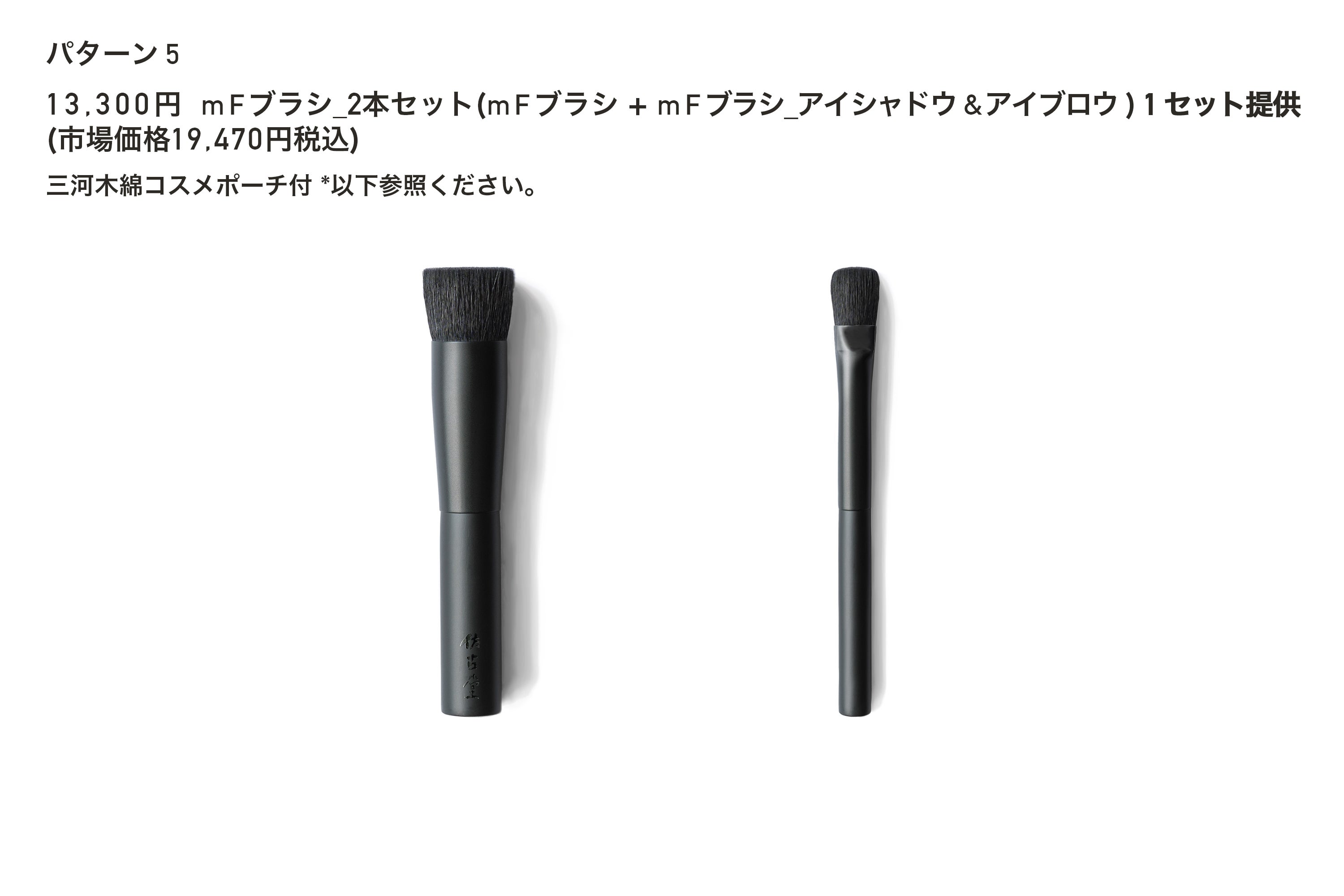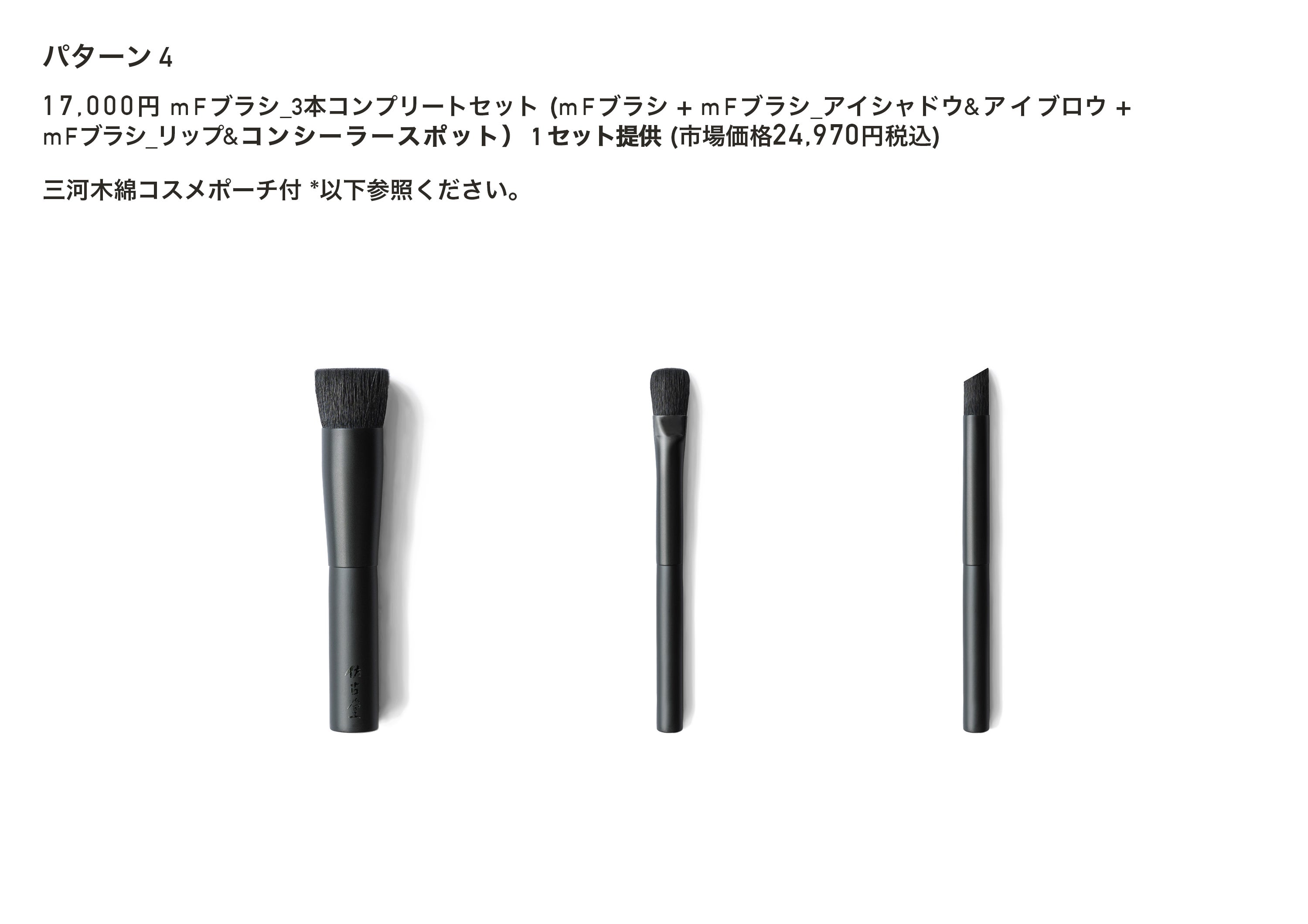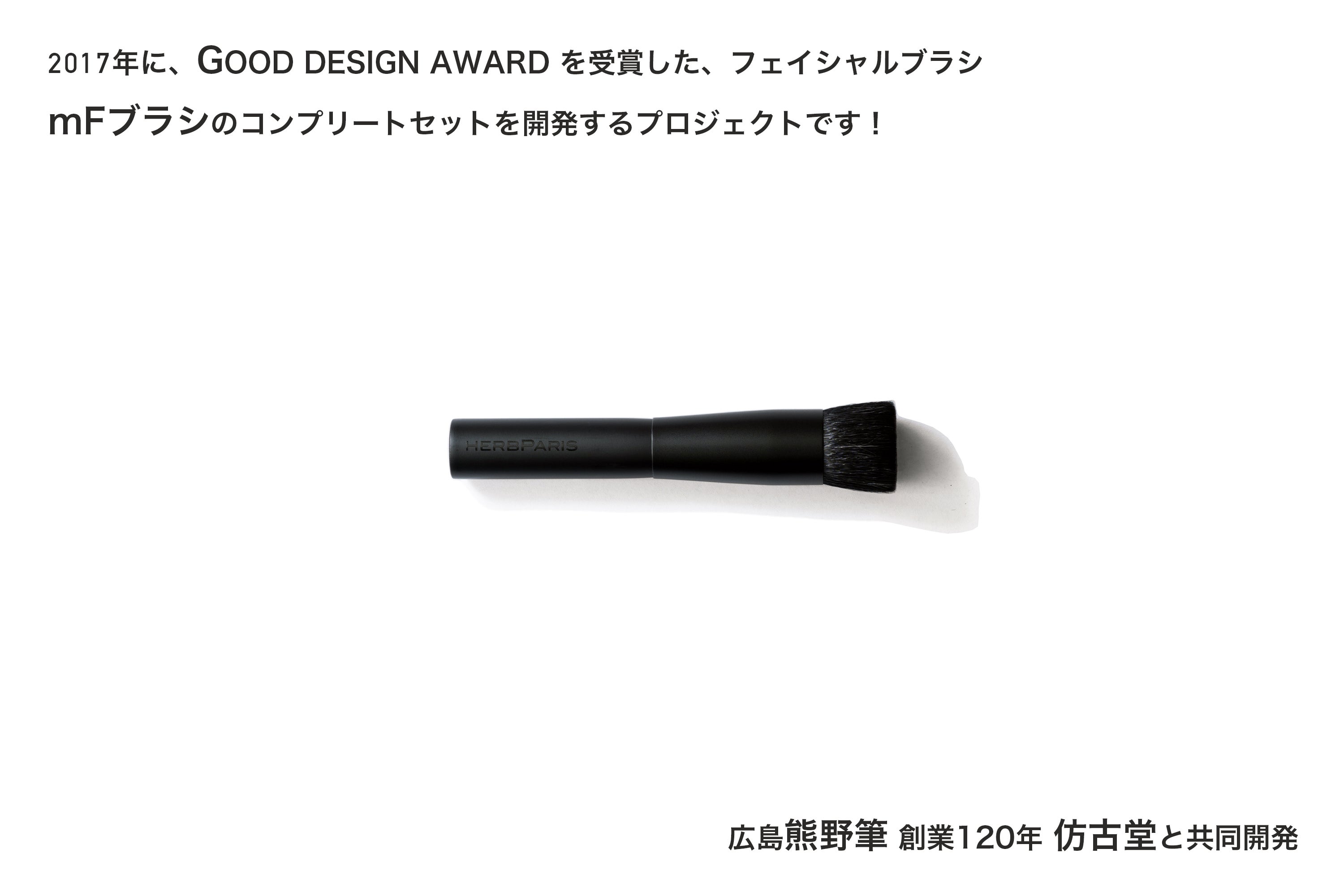運営するショップに来店されるお客様の声、「ミネラルファンデ−ションをせっかく購入したのに使いこなせない、適量がわからないため厚塗りになってしまう」という悩みとデザイナー自身のそれが合致したことが大本の経緯で、筆の老舗メーカーに開発を依頼することで、日本のものづくりのこだわりを生かして妥協しない機能とデザインのmFブラシを完成させました。そこで今回は、ベースメイクのみならずパーツごとに、全てユニークな発想によるアプローチで商品化を実現させる、シンプルさで時短も期待できる、メイクアップコンプリートセット制作へ。