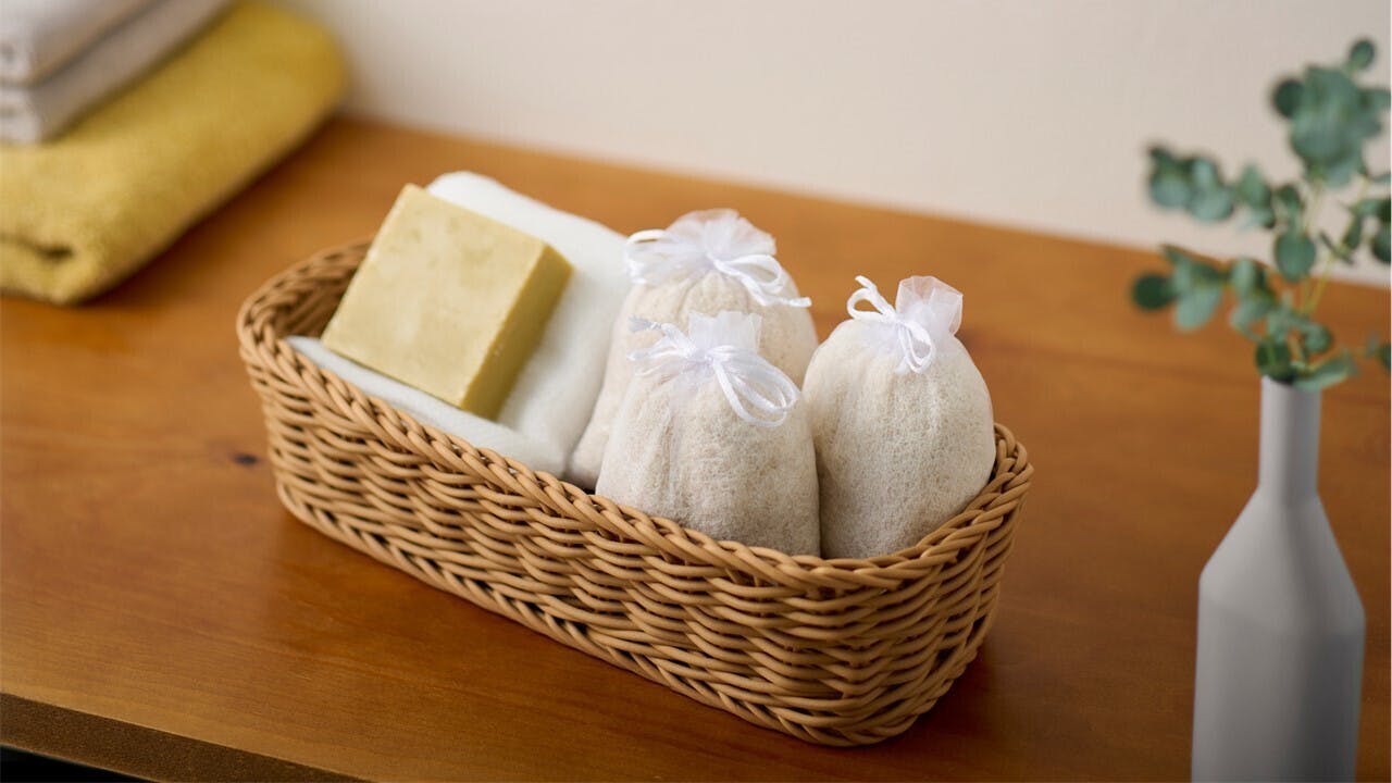 そこでこれまでの和装のための「生地」としてではなく、全く別の形でバスアイテムとして絹糸を活用したのがこの「絹糸の湯」です。生産ロスを減らしつつ、抗酸化作用や保湿効果など、絹が本来持つ力を活かした製品として資源を活かしています。