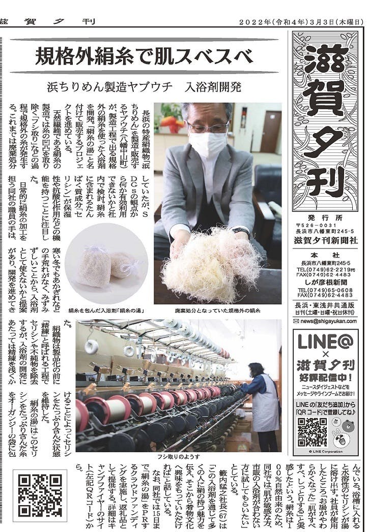 滋賀県長浜市中心とした地域夕刊新聞の「滋賀夕刊」に、今回のプロジェクト掲載されま