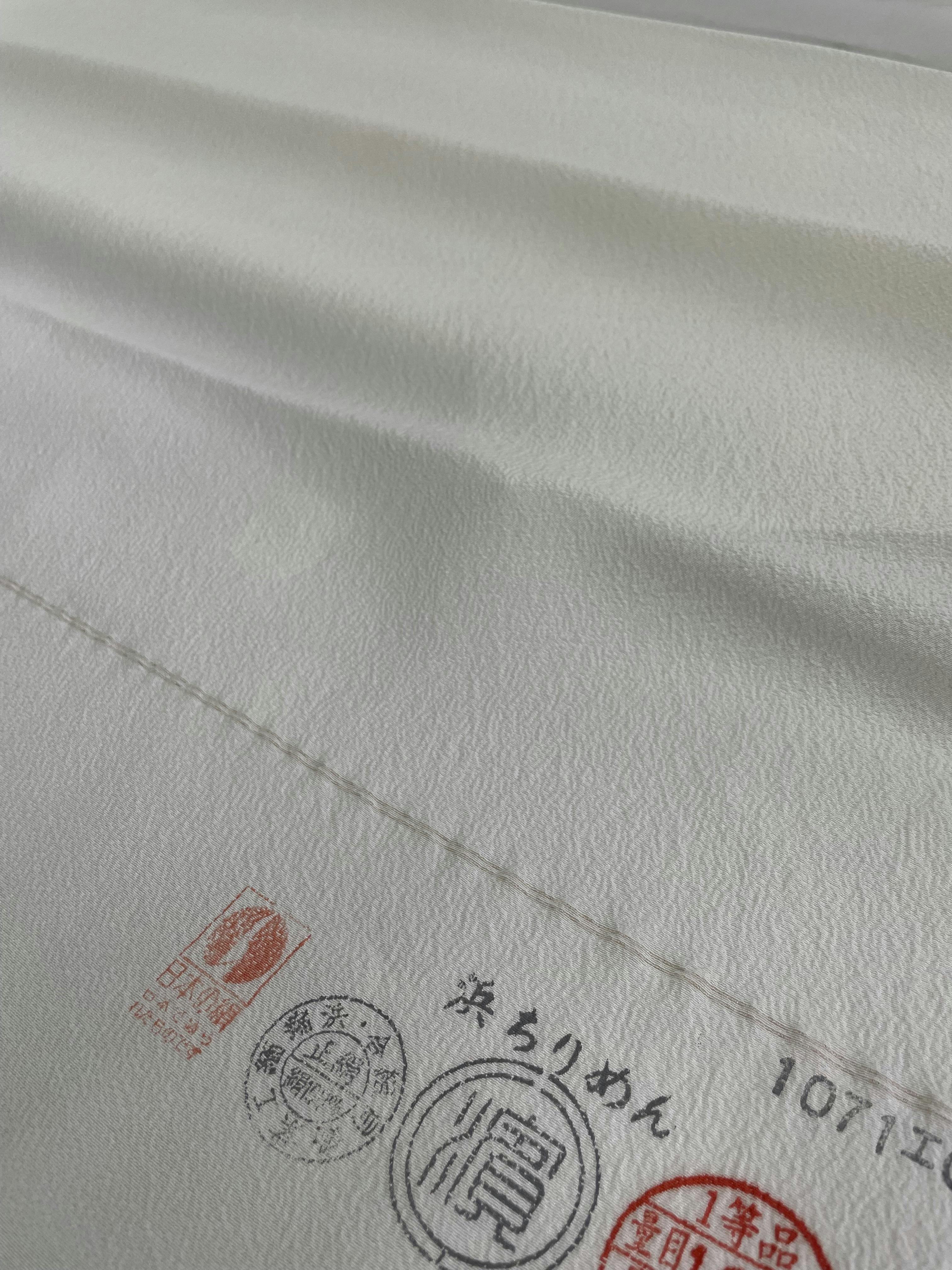 本日ご紹介させていただいた写真は、濱ちりめんです。濱ちりめんの最大の魅力はこのうねりのようなシボです。シボは糸に撚り(より)をかけることで、生まれます。