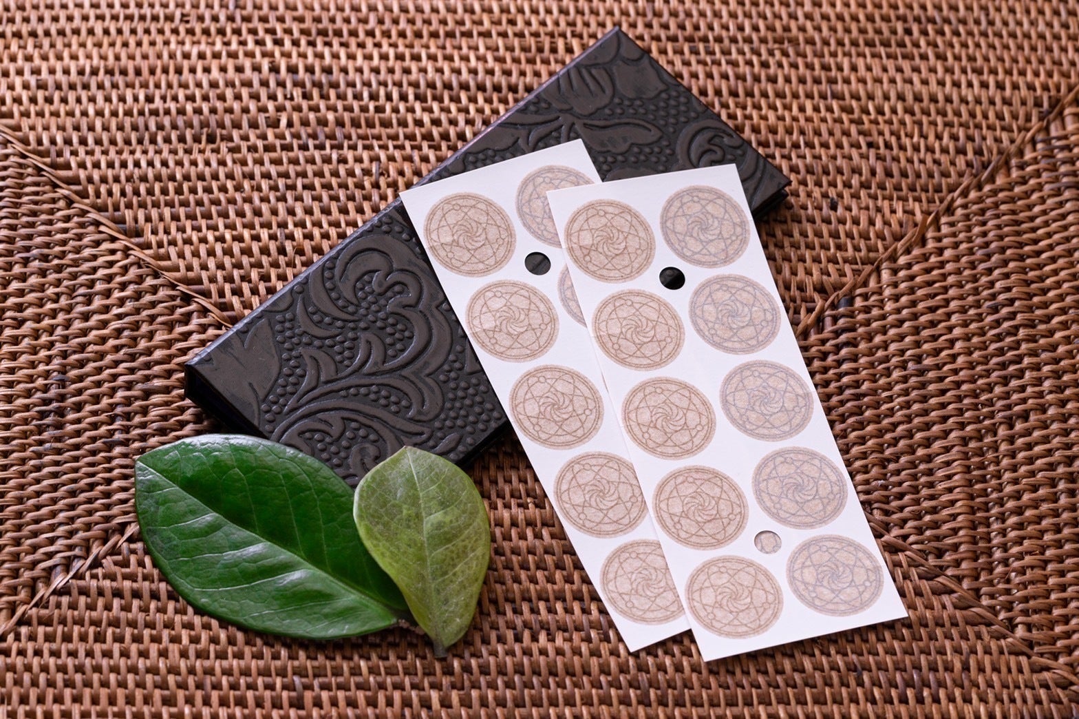 【パトラテープ】の特徴は、練りこまれている鉱石のパウダー。水晶・トルマリンなど数種類の鉱石パウダーを、セルフケアに最適な独自の配合で練りこんであります。【パトラテープ】で体のバランスを整えてから施術することにより、経絡がしっかり刺激され、体がより整った状態をキープできるようになります。テープを貼らなければ3日に1回施術が必要なところ、この【パトラテープ】を併用した施術により、施術後2週間ほど効果が持続するようになりました。