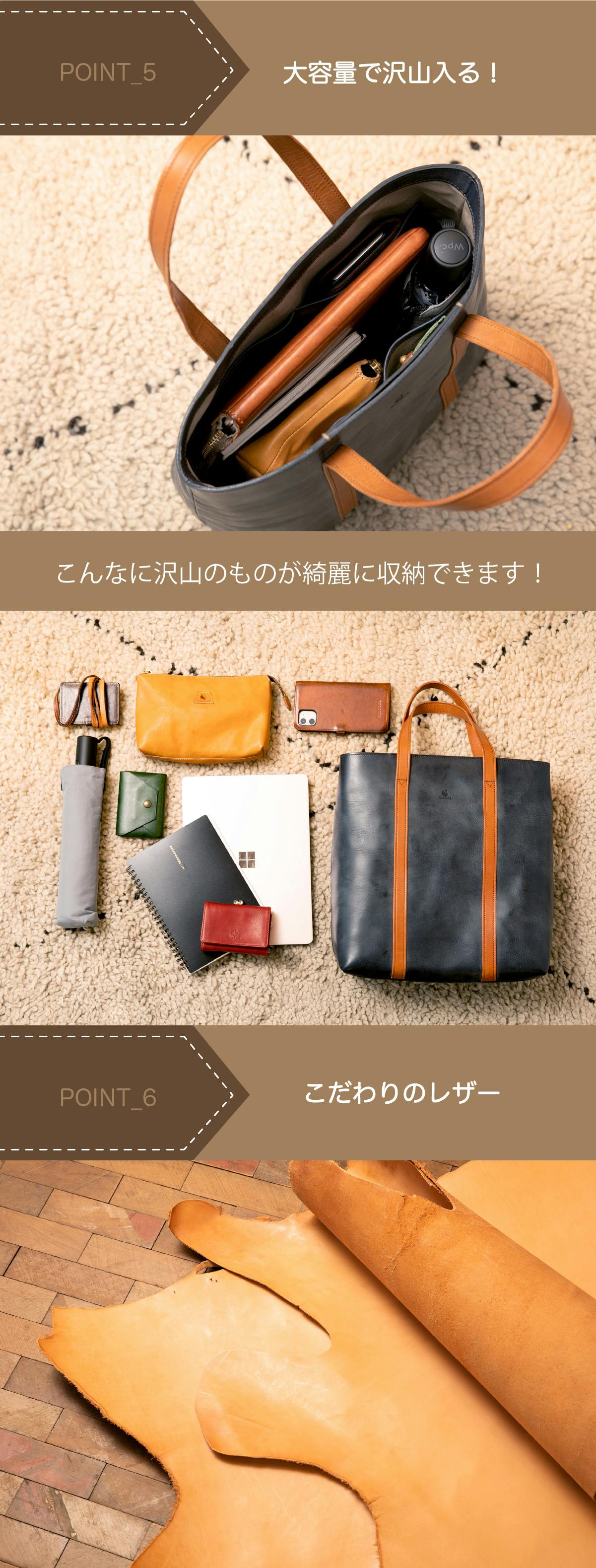 タフな牛革で作られた縦長スタイルのトートバッグがデビュー!全て本革、なのに軽量!混雑した電車内でも膝の上にポンっと乗せておけば、隣の人の邪魔にならないジャストサイズが使いやすい!経年変化も美しい、永く永く使えるオーダーメイドバッグです。