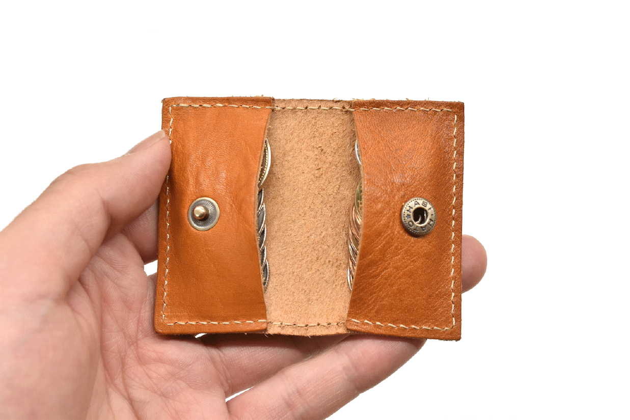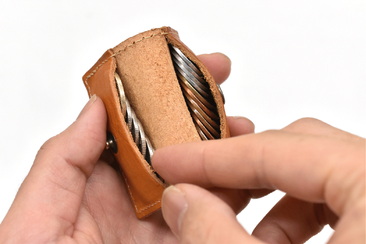 ミクロサイズのスマートなルックスと、栃木レザーの革らしい質感、圧倒的な経年変化。散らばりやすい小銭も綺麗に2列に並ぶ、実用的な使い心地。