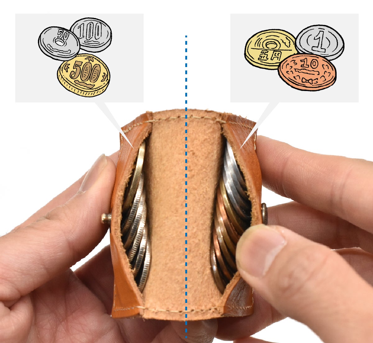 魅力的な仕分けシステムは、開けた瞬間に感覚的に取り出したい小銭を選ぶことができます。