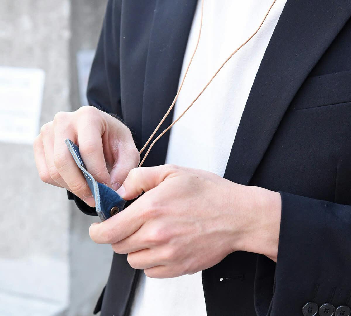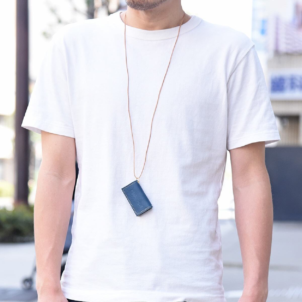 首から下げて使用するネックストラップ、肌身離さず持っていられて、いつでも安心。
