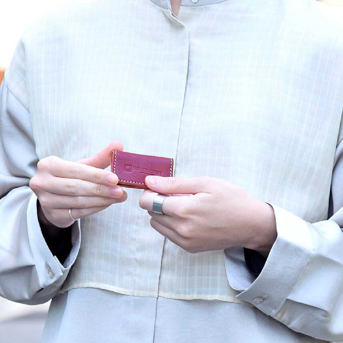 小さく、薄くても耐久性と高級感を持たせるために選び抜いた素材は、日本国内のタンナーが作り出す伝統の革です。