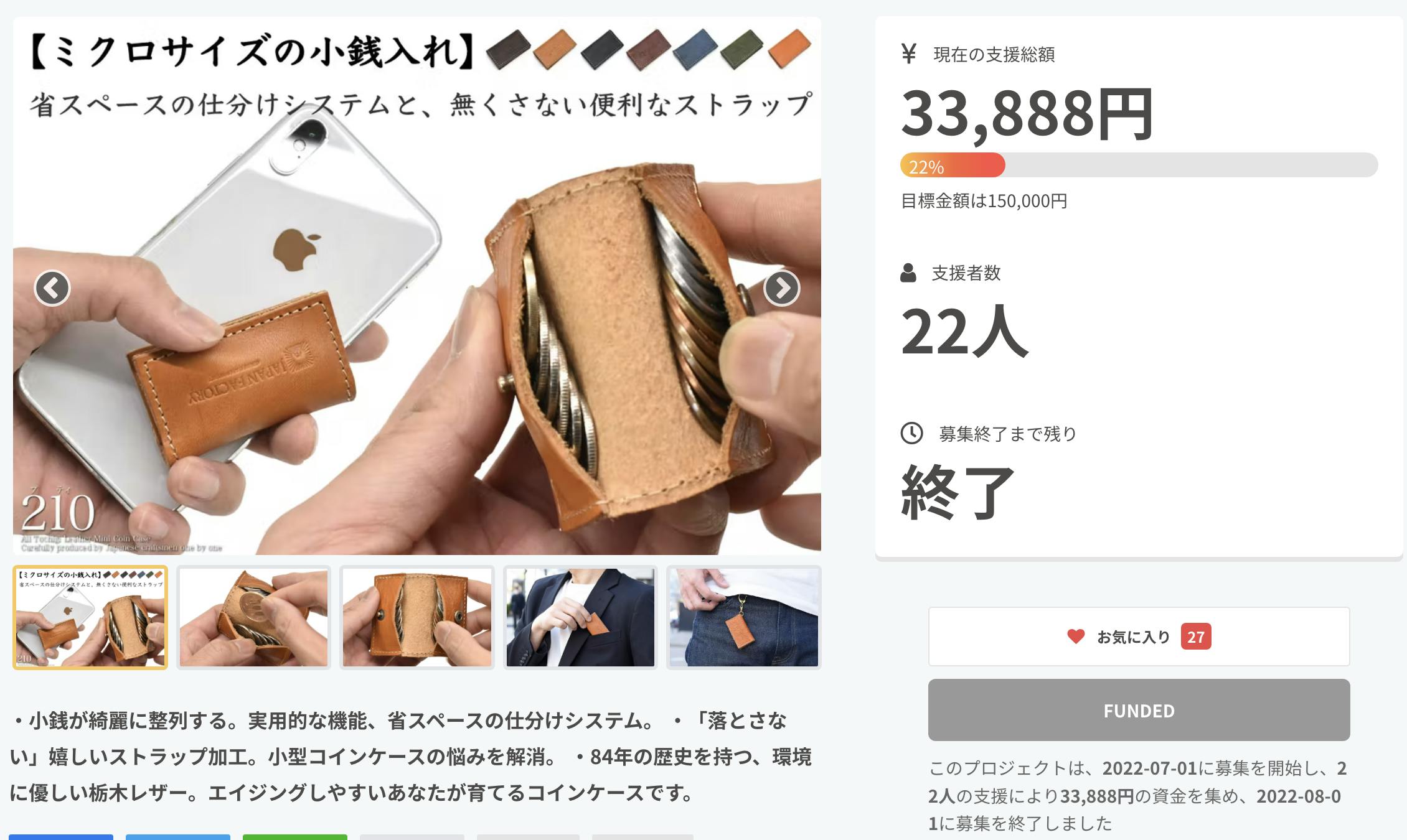2022/08/02 09:47仕分けシステムを搭載したミクロな小銭入れ。キャッシュレスの相棒【210-プティ】たくさんのご支援をいただき、無事にプロジェクトを終える事が出来ました。今回も多くの方に共感いただき、嬉しい限りです。日々新しいプロダクトが発表される中、当プロジェクトへ期待を持ってご支援いただいたものと、スタッフ一同感謝の気持ちで一杯です。誠にありがとうございます。【配送について】ご登録の住所に変更がございましたら、8/5までにお手数ですが「実行者へ問い合わせ」よりご連絡ください。【お盆期間中のお休みのお知らせ】8月11日(祝) 〜 8月16日(火)の間はお休みとさせていただきます。その間の受注/出荷/お問い合わせ対応は8/17(水)より順次ご対応いたします。Hallelujah inc. もっと見る