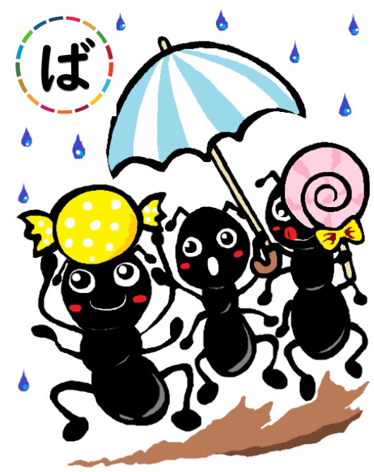 先ほどの「あ」の絵札に貼ってやりましょう♪