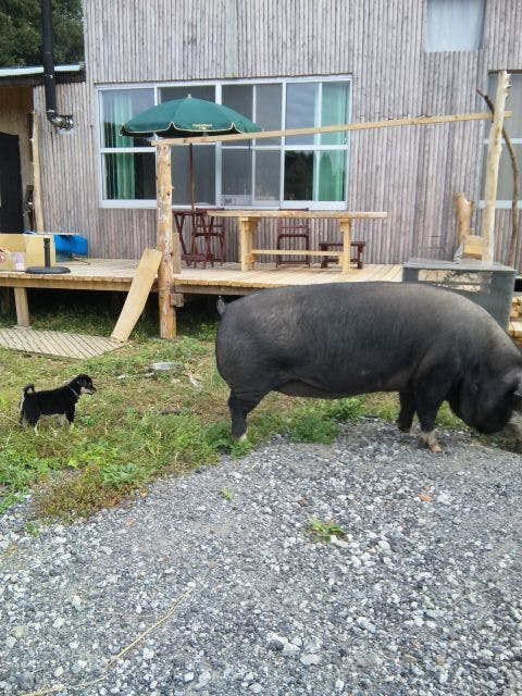 動物も好きで、犬、猫、ウサギ、ヤギ、豚、フクロウなども一緒に生活しています。
