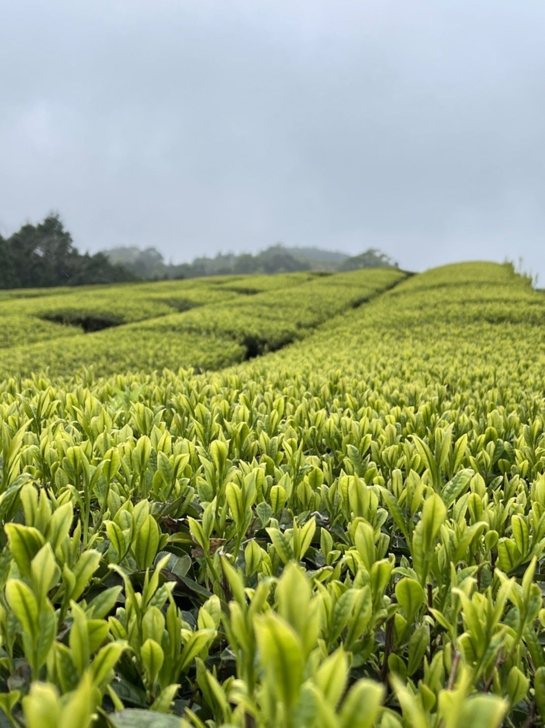場所は、熊本県と鹿児島県の県境で、標高580mの山の頂上に14ヘクタールの広大な敷地があります。その中の8ヘクタールがお茶畑です。通常は防霜ファンといって、扇風機みたいな霜除けがあるのですが、ここには1本もなく、広大なお茶畑なのに、昔ながらの風景が楽しめるのも自慢の一つです。