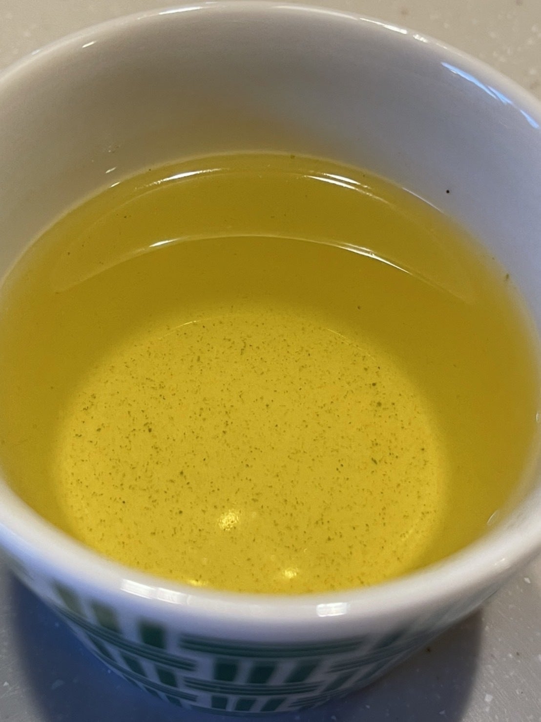 CMとかでよく見る、グリーーン!ではないですが、昔ながらの栽培方法で栽培している為、昔ながらの黄色っぽい緑茶です。味は、渋みの少ない身体に染み込む優しい味わいで、個人的には大変美味しいです!(手前味噌かもしれませんが、よく美味しいと言って頂いています。)