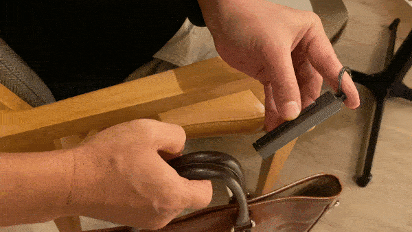 『#スマフックス』は一見すると、スタイリッシュなアクセサリーのようなデザインですが、なんと耐荷重は約16kgの頑丈なつくりです。ノートパソコンを入れたカバンや、リュック等も余裕で掛けられる頼もしいタフなアイテムなんです。