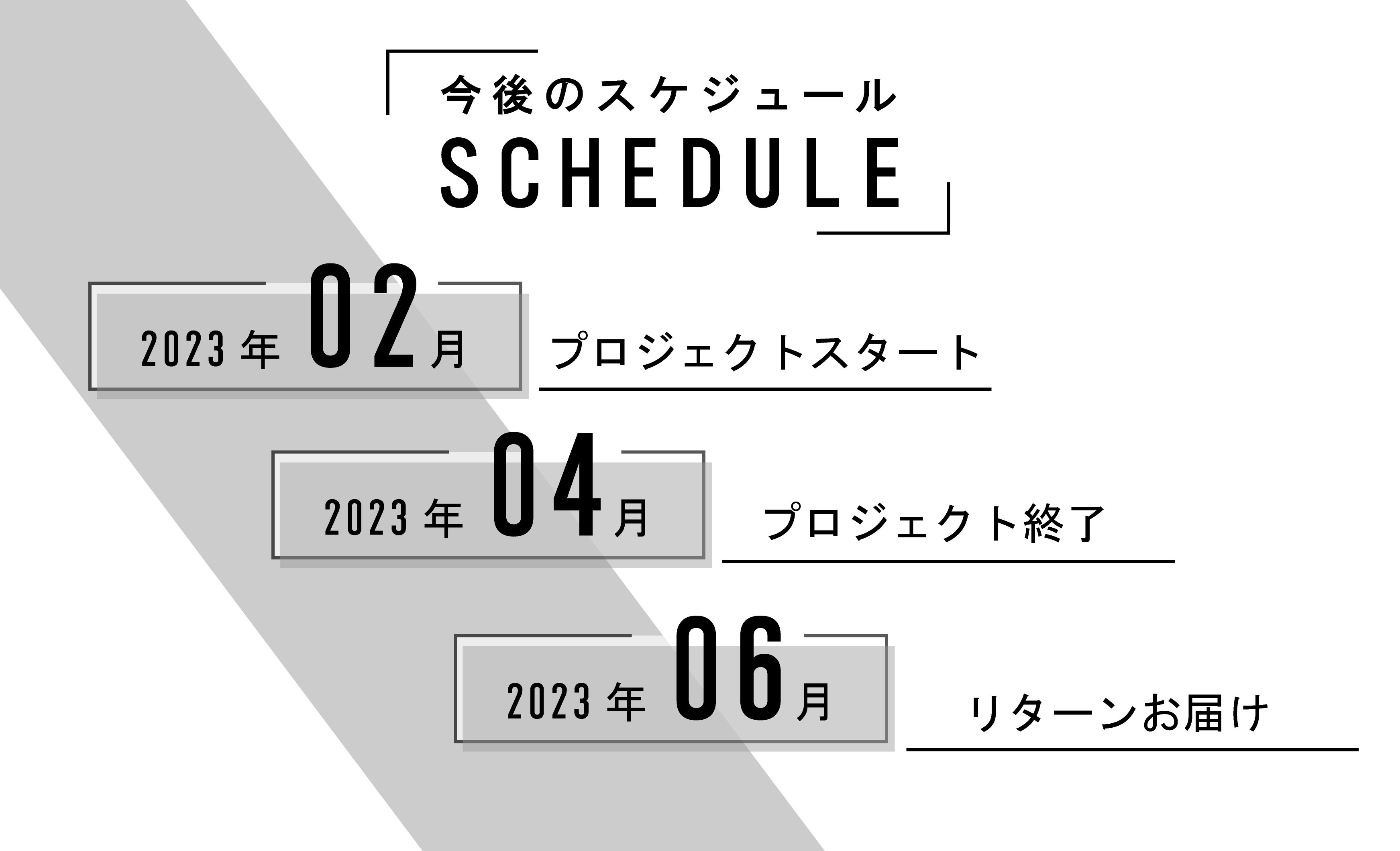 ②配送期間の予定・2022年2月上旬:プロジェクト開始・2022年3月下旬:プロジェクト終了・2022年5月下旬:リターン開始(お申し込み順に発送いたします)