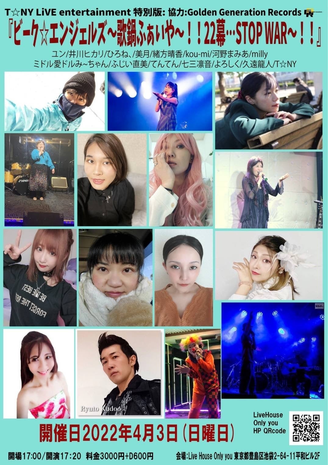 会場:Live House Only you 東京都豊島区池袋2-64-11平和ビル2F 電話 03-6912-6959