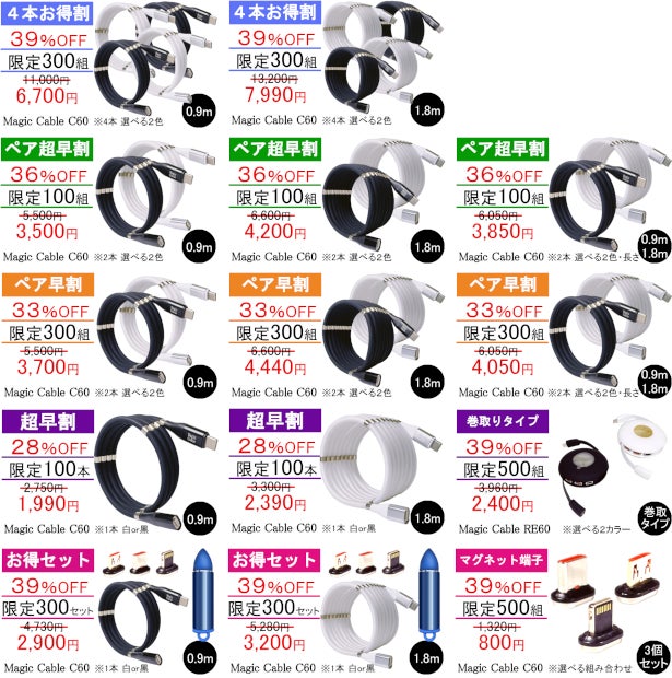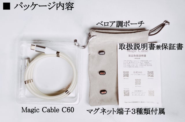 また、各電子機器や磁気カードなどには、生産・発行元より「磁石を内蔵する製品に近付けないでください」といった注意がありますので『Magic Cable』に限らずご注意くださいませ。