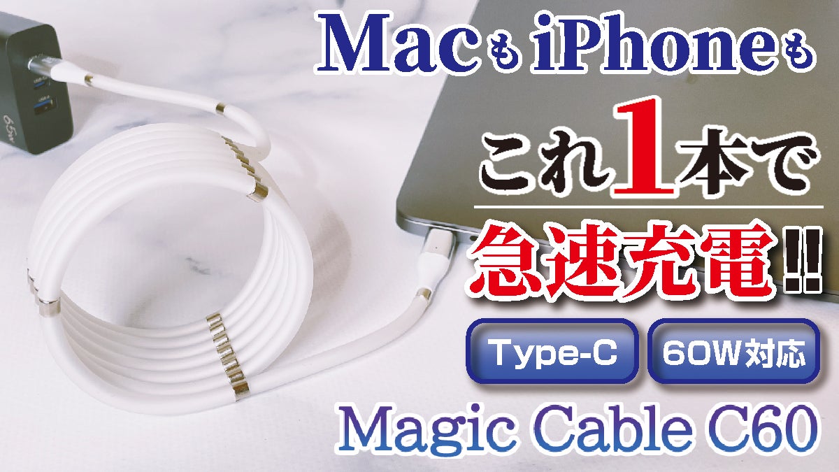 お世話になっております。MKトレードです。本日、無事に『Magic Cable C60』を公開いたしました!『Magic Cable C60』は、かねてより大好評の『Magic Cable』シリーズ最新モデルです!!昨年から多くのご要望をいただいていた「Type-C固定端子」を採用しました!60W対応で、パソコンの急速充電も出来る「充電ケーブル」です。『これ1本』で、パソコン・スマホの両方とも充電可能です!!【商品の特徴】1.待望のType-C採用!60W対応でパソコン・スマホも1本で充電可能に!2.3種類のマグネット端子付き。片手でワンタッチ充電、取り外しが可能!3.大好評の「マグネットケーブル採用」キレイにまとめてラクラク収納!今回、ご支援金額により応募いただくと『もれなくもらえるお得なキャンペーン!』を実施しております!詳しくは、プロジェクトページ中ほどをご確認ください。『Magic Cable C60』のお届けは「22年6月末予定」となっておりますが、1日でも早くお届けさせていただけるよう、しっかり準備させていただきます。この商品をもっと多くに方々に知っていただきたいと思っておりますので、最後までどうぞよろしくお願いいたします。『Magic Cable C60』プロジェクトスタッフ一同