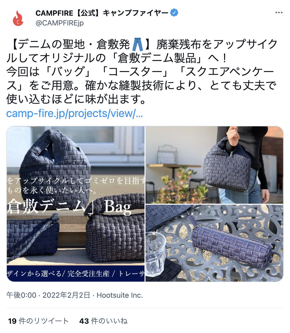 【ツイートURL】https://twitter.com/CAMPFIREjp/status/1488708788521783296?s=20&t=K8Ifs4jkjA3qa2mMCIzOoQ