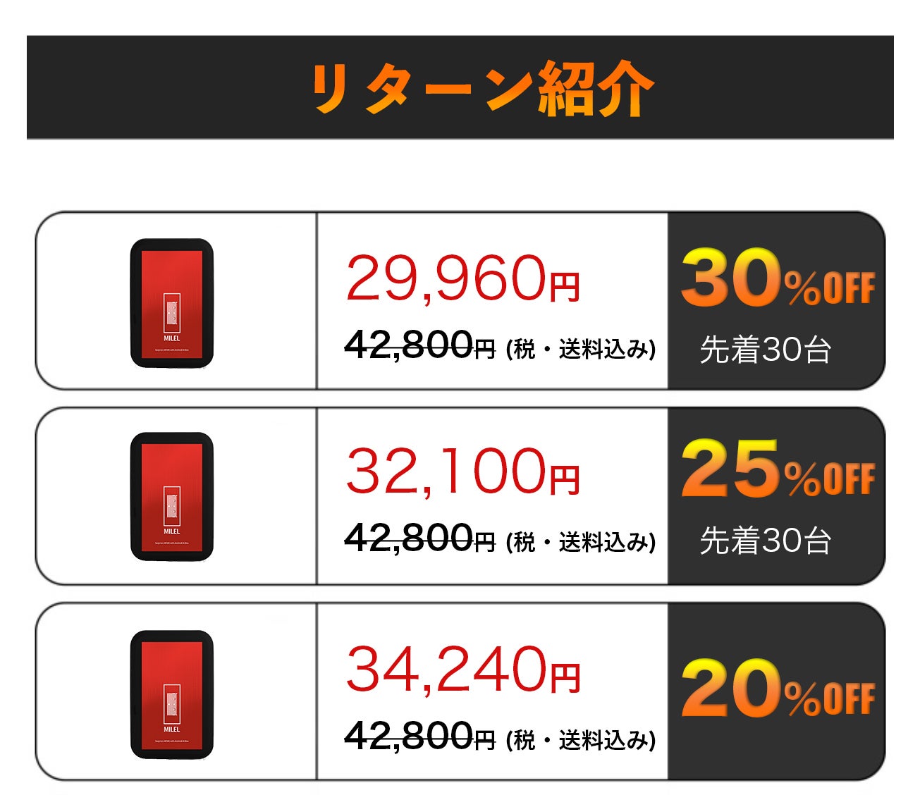 リターン品の配送が完了するまで、MILELプロジェクトはShenzhen Xinhai Vision Technology Co., Ltd.の日本における独占販売権を有する正規代理店です。詳細に関しては、ページ下部のリスク&チャレンジをご確認ください。