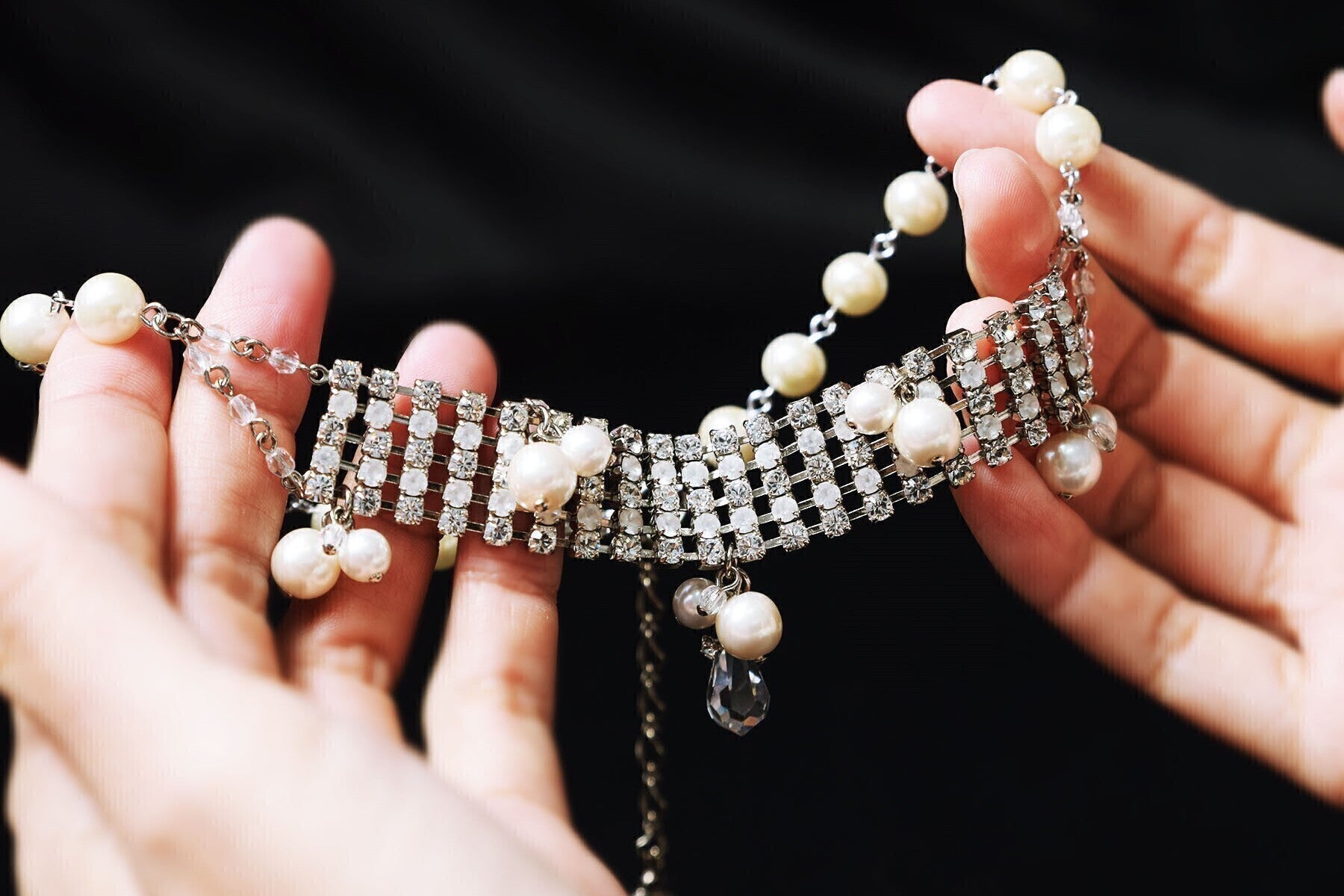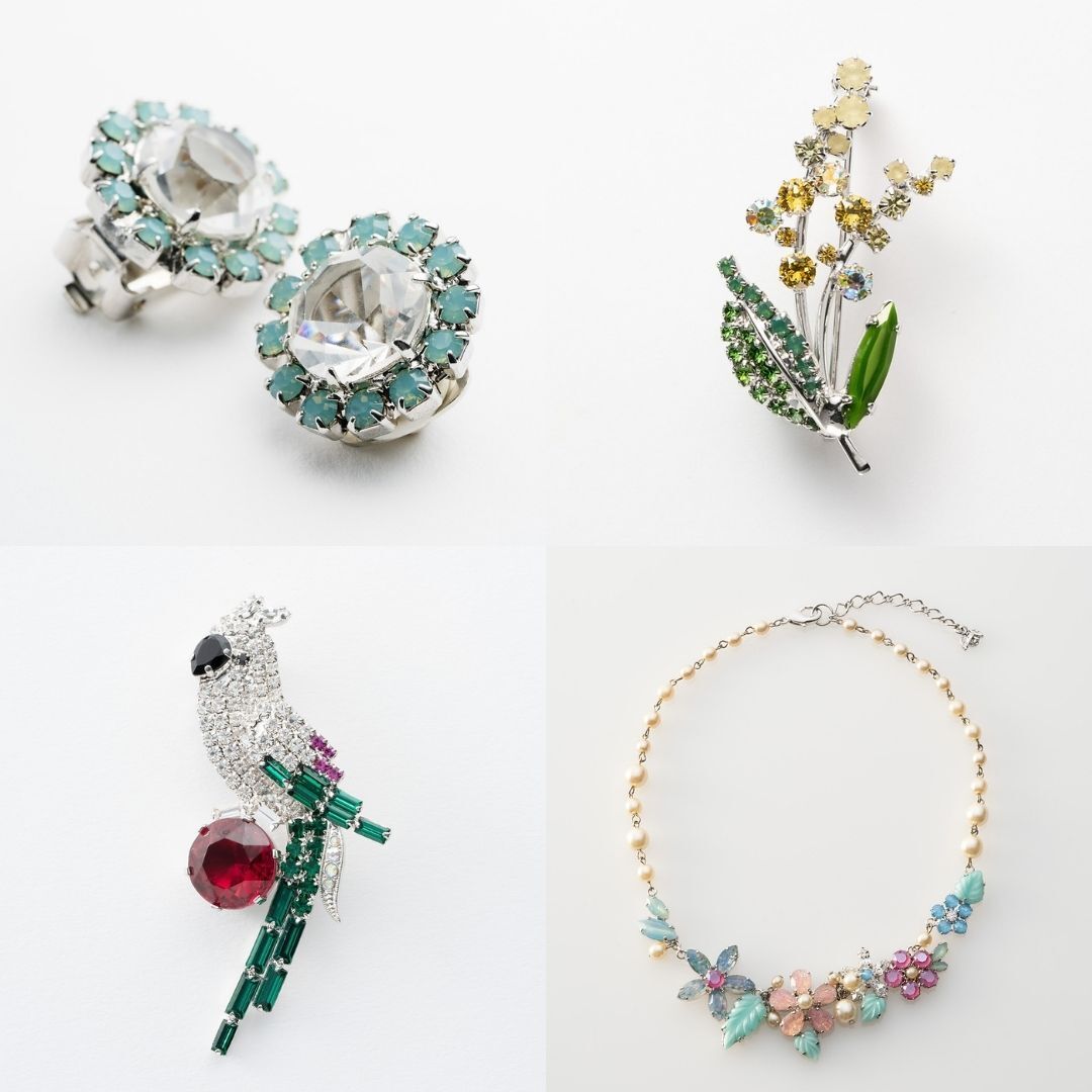 貴金属ジュエリーが素材に価値があるのに対して、コスチュームジュエリーは、ラインストーンや天然石などを使い、装飾性が高いのが特徴です。