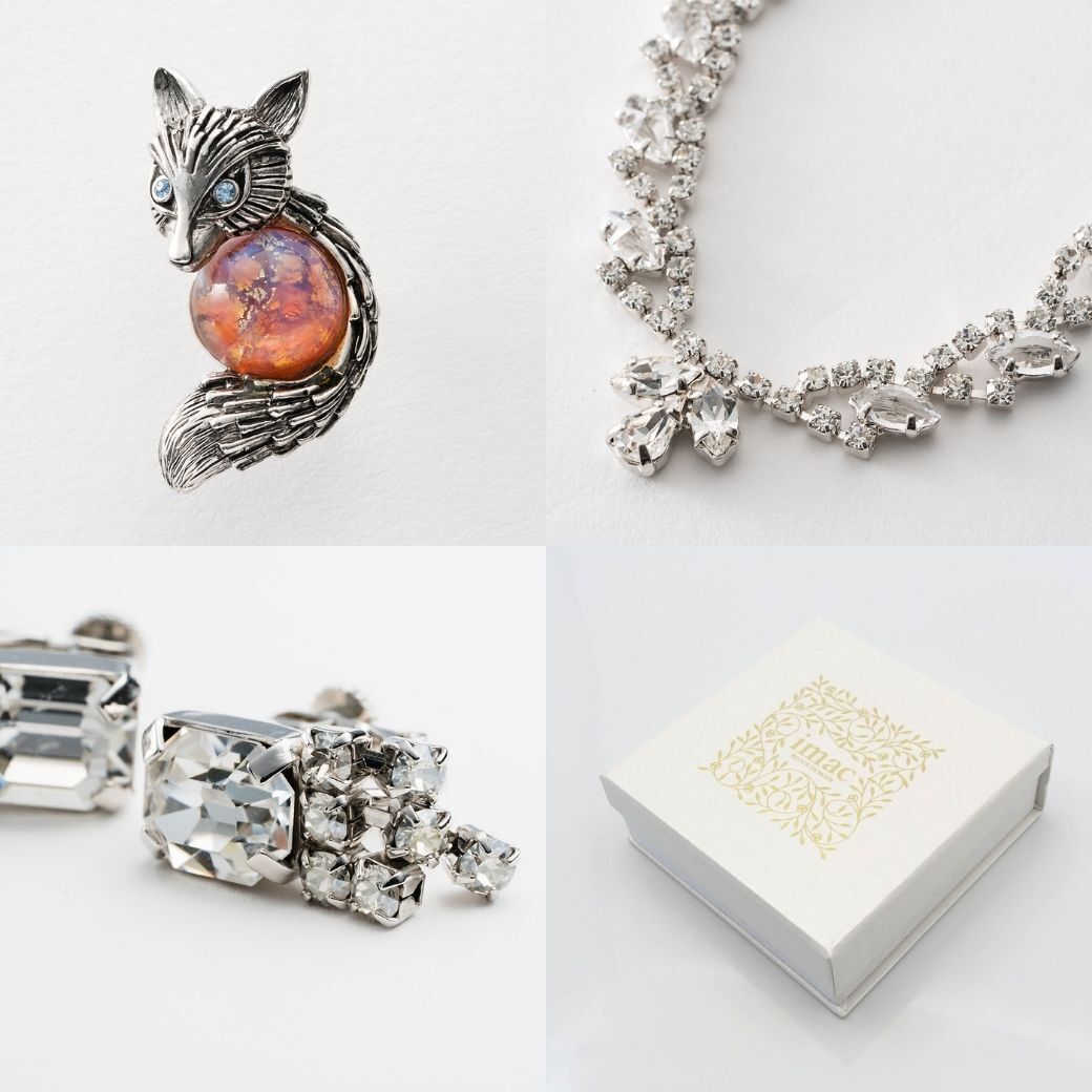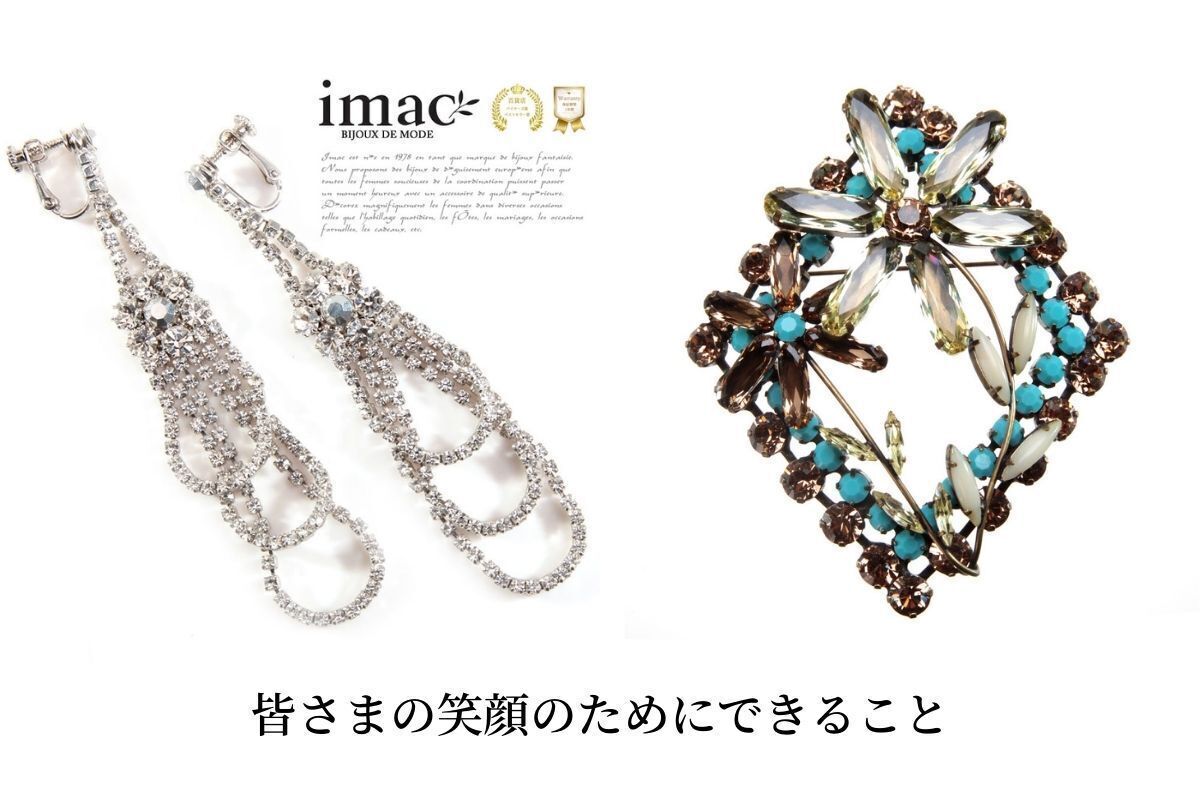 ・きらきらしたジュエリーといえばイマック。ラインストーンのカットがきれいで輝きが違う。