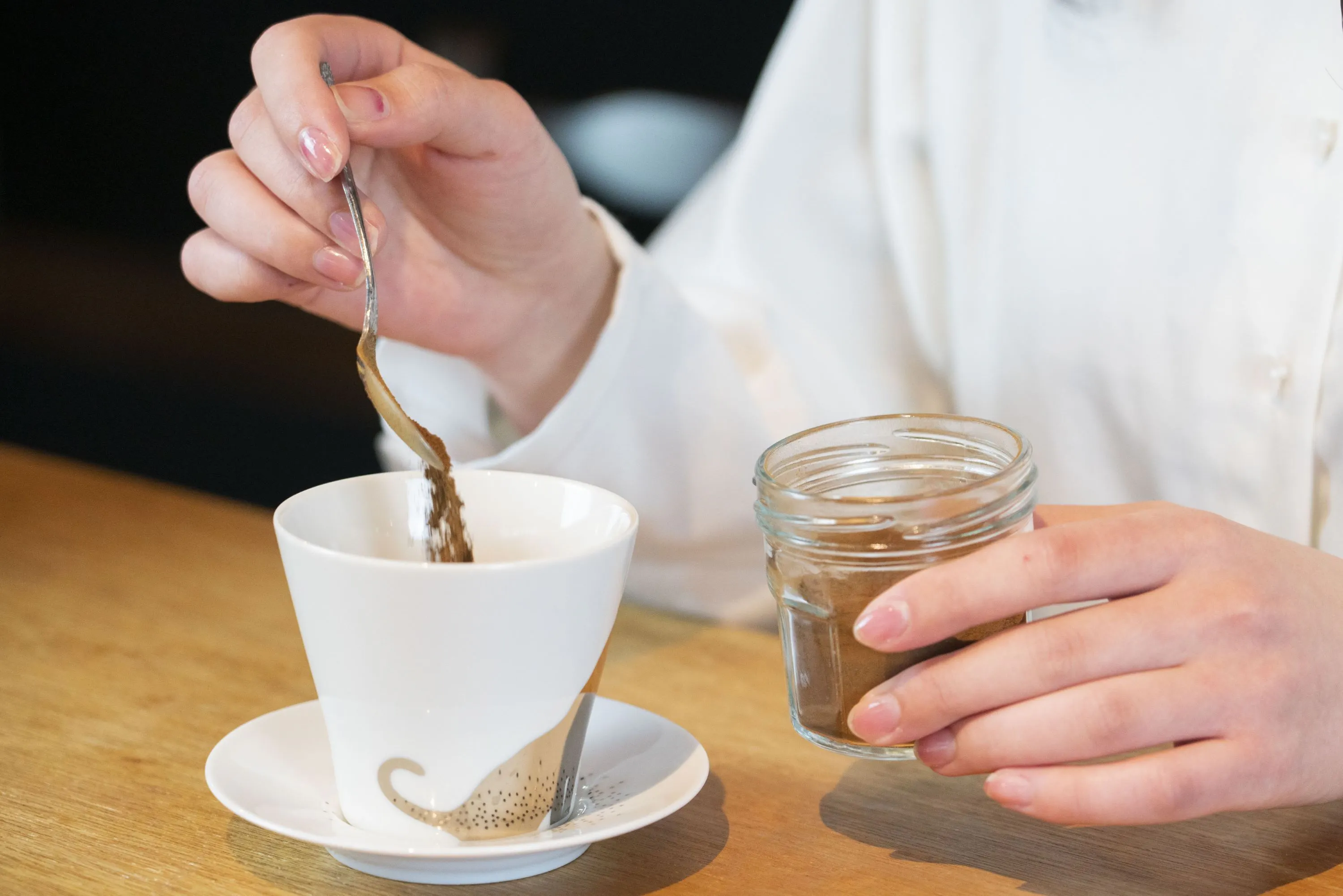 お抹茶やココアのようにお湯やお水に溶かすだけで本格珈琲が楽しめます。
