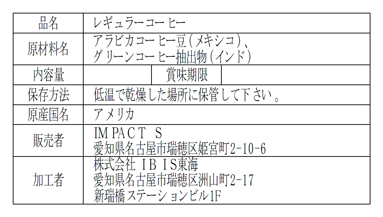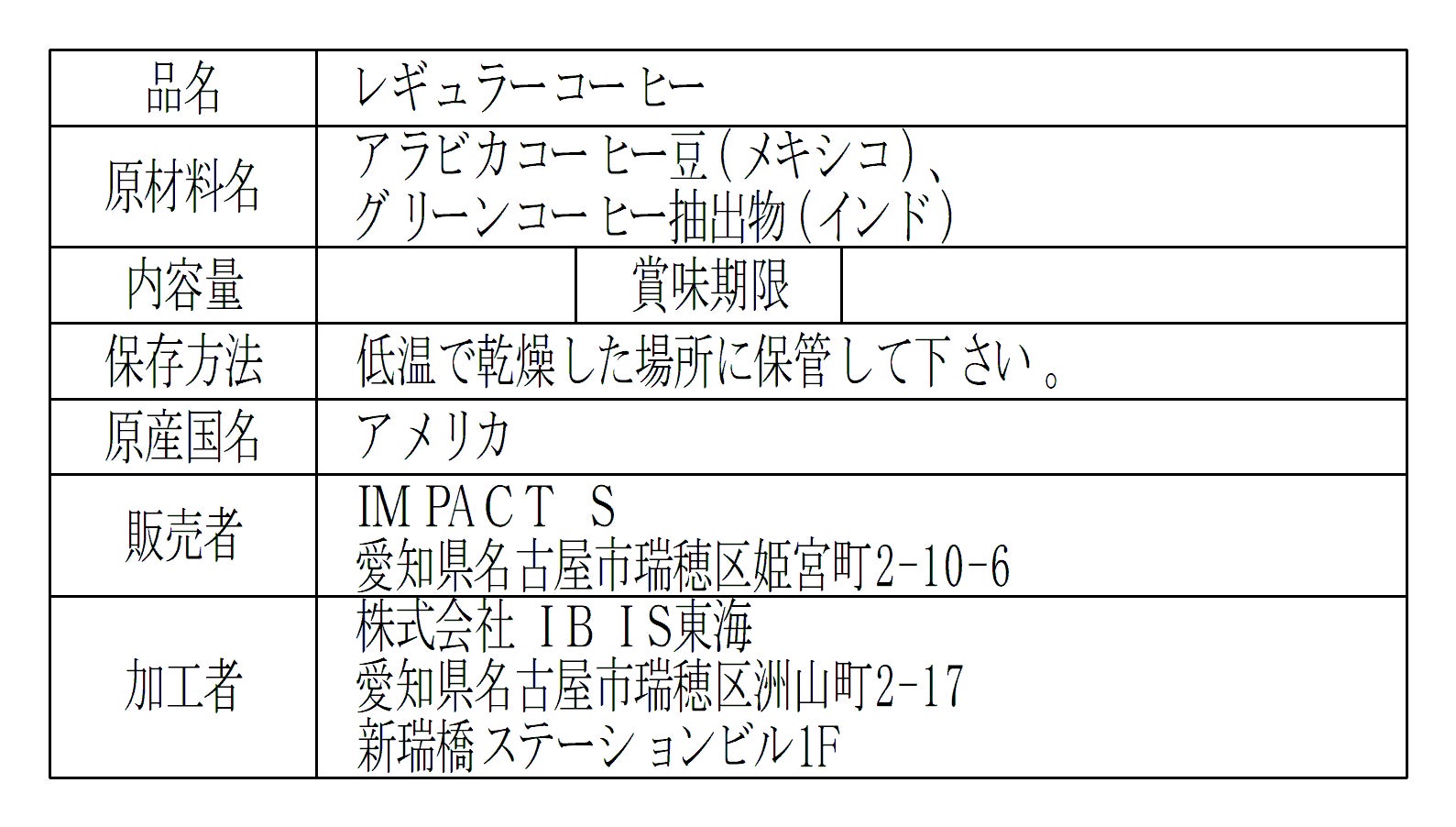 愛知県名古屋市瑞穂区で生coffeeの卸、OEMをしておりますIMPACT Sです。