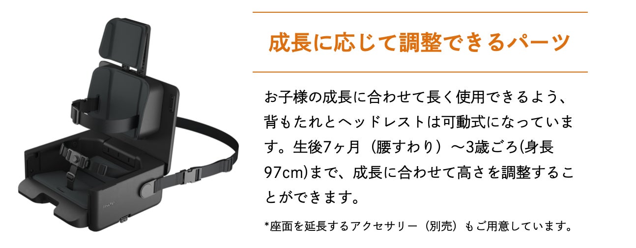 体幹が弱い乳幼児のおすわりの姿勢をやさしく支える機能性と、どこへでも気軽に持って出かけられ、日常に馴染むデザイン性を追求しました。
