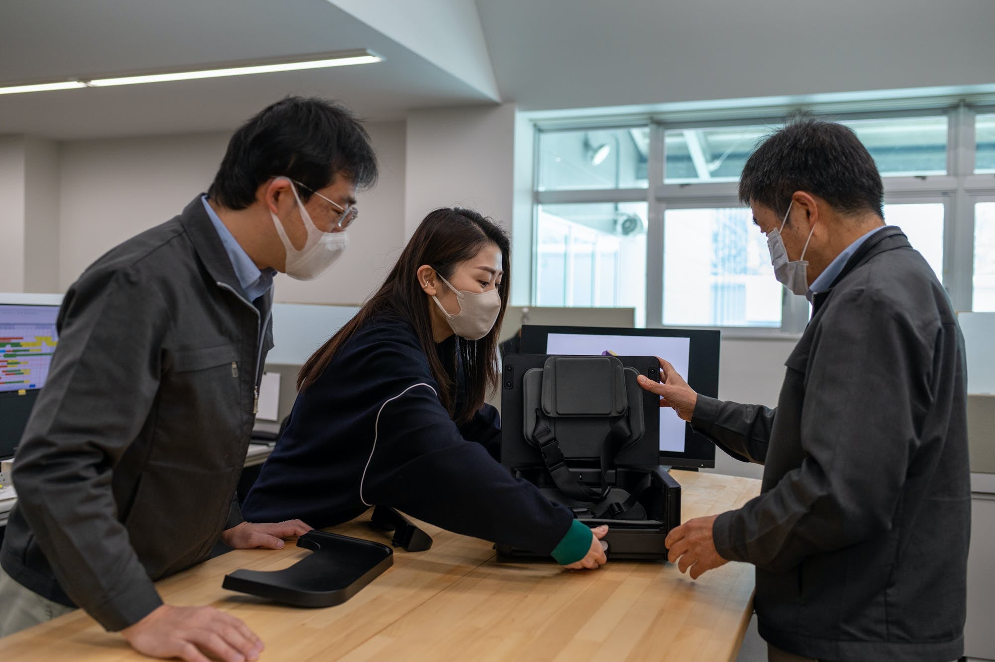 ただ、それぞれ業界トップクラスの技術と実績を誇る企業とはいえ、「乳幼児用のポータブルチェア」を作るのは初めて。体幹の弱い乳幼児の姿勢を支える機能を備えながら、「ママでも持ち運べるポータブルな仕様」を実現するのは、正直決して容易なことではありませんでした。