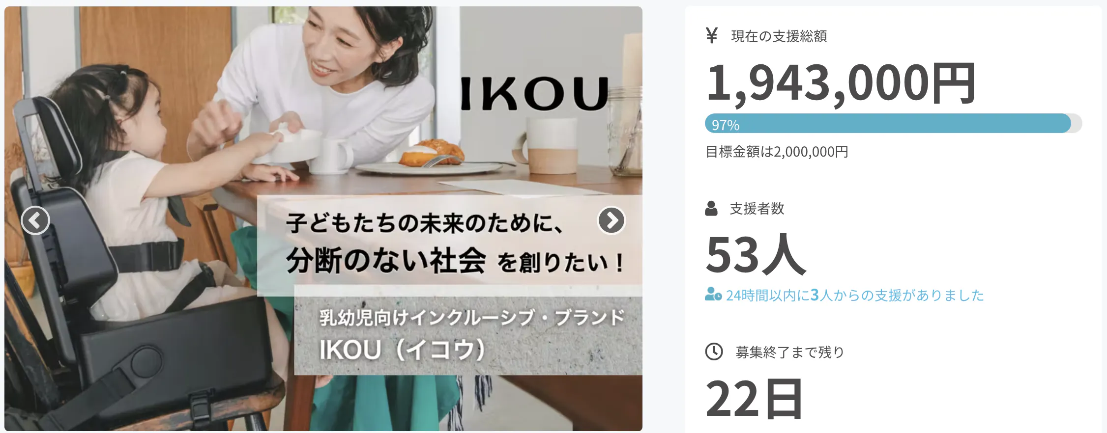 3/4(金)の公開から2週間後の3/18(金)の時点で、支援総額が目標の97%にまで到達しました。