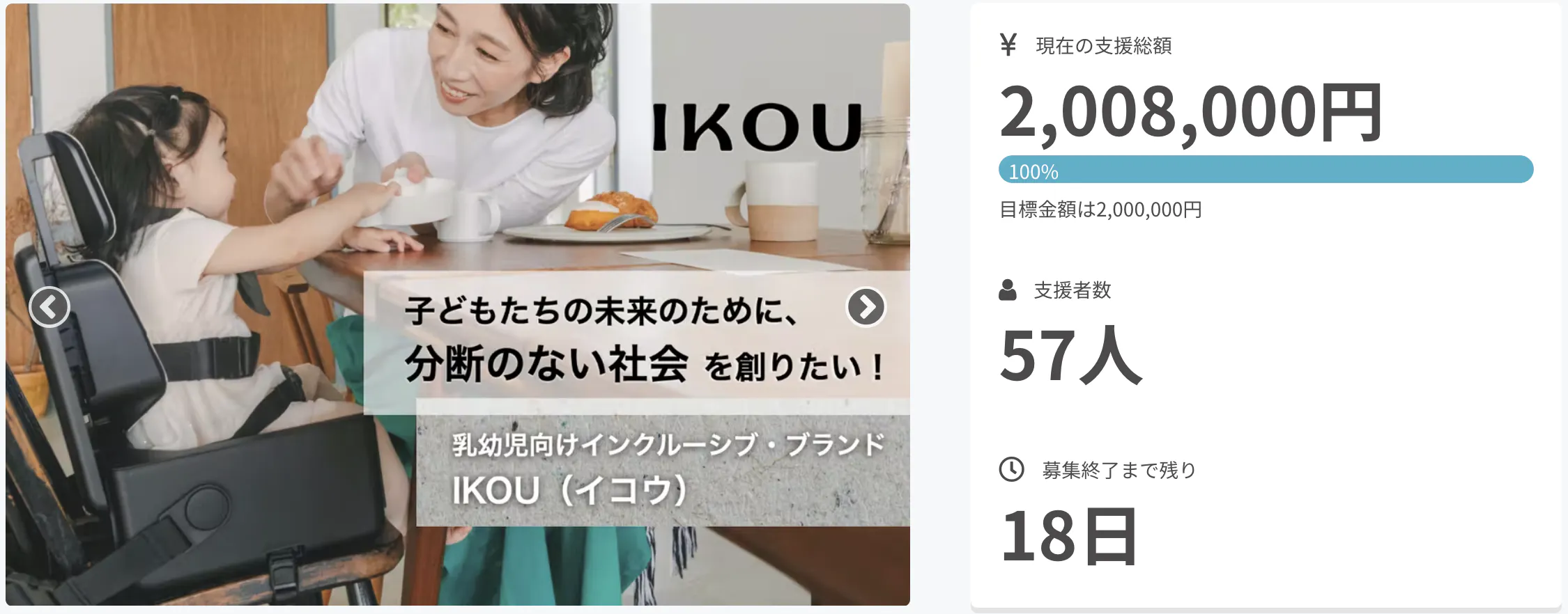 本クラウドファンディング開始から19日目、折り返し地点の3/22(火)に目標金額の200万円を達成することができました。