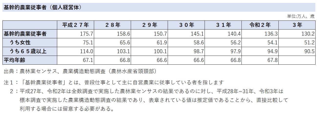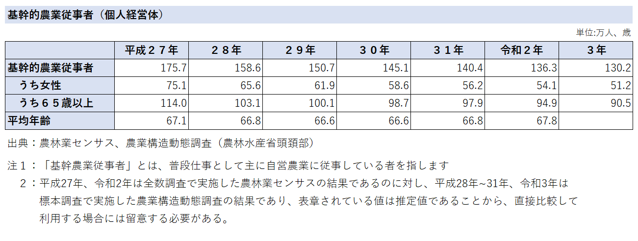 しかし、従来の農業従事者数を取り戻していくのはとても難しいチャレンジであることも 理解しています。