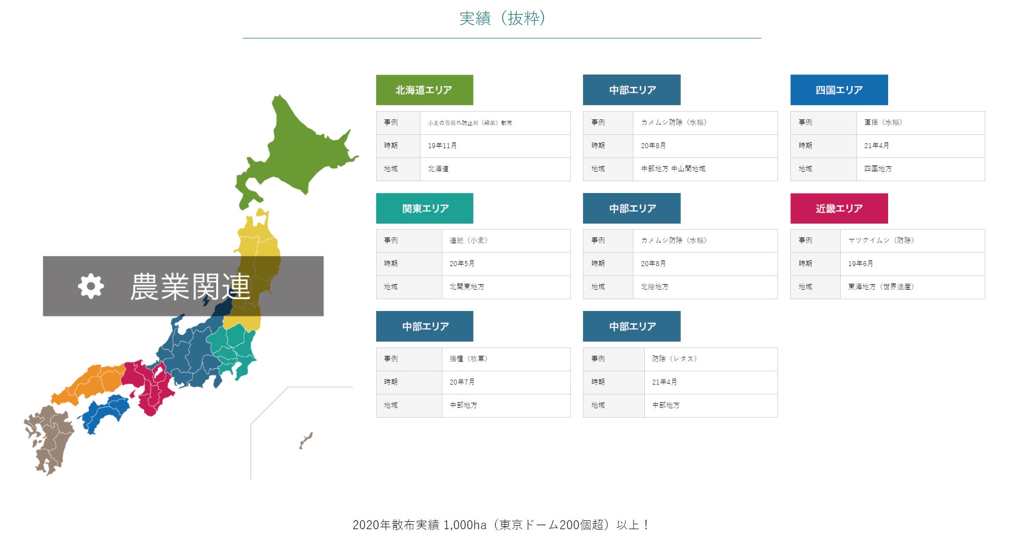 弊社はスマート農業普及プロジェクトを推進をしています。ドローンを使った空中散布事業や、一次産業の Update 事業での産学官連携などで知見を蓄積してきました。