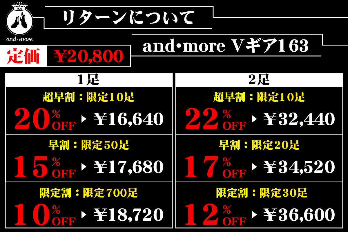 2023/07/28 18:09いつも応援いただき誠にありがとうございます。皆さまにご案内です。7月29日(土)8時に 『防水ブーツ Vギア163』のプロジェクトがスタートします。ご要望が多かった、Vギア163専用の中敷きを2足セットでご用意しています\ 100人限定です /【中敷き2足20%オフ】中敷き× 2足 2,290円(税込)「お気に入り」登録お願いしますVギア163はこちら応援よろしくお願い申し上げます。■公式LINE(サイズが不安な方はお気軽にメッセージください)こちら>>>and・more吉田博美 もっと見る