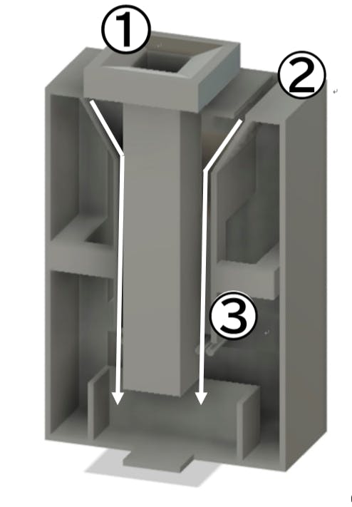 ③のシュレッダー部分で吸い殻をすりつぶし確実に鎮火させる